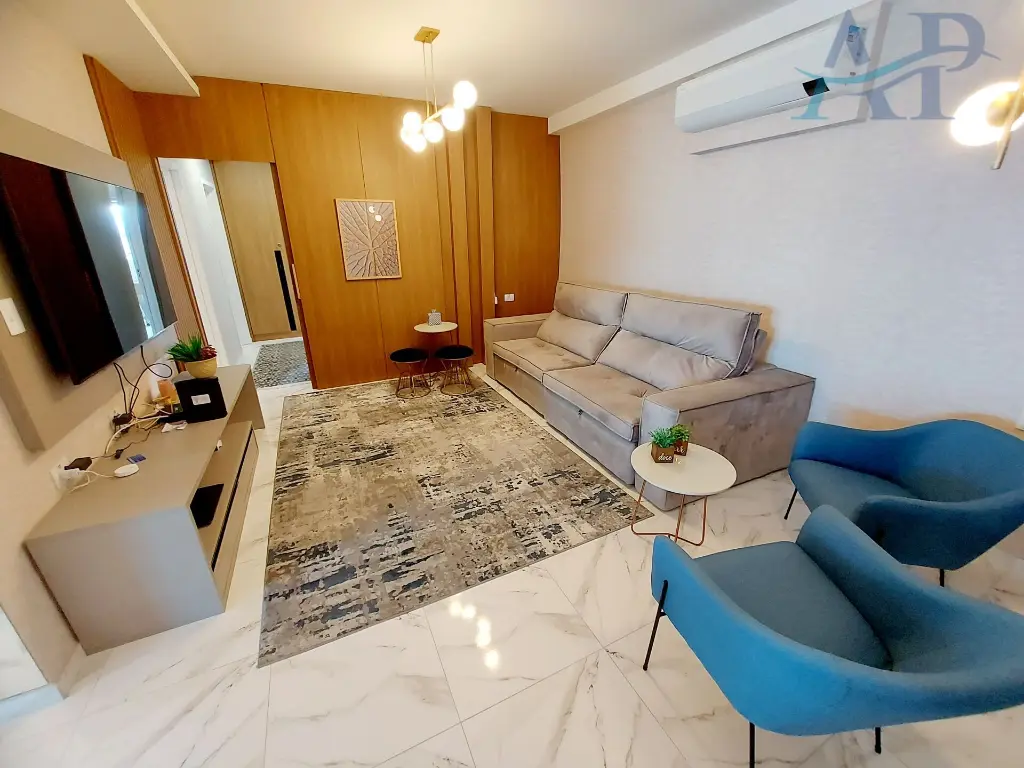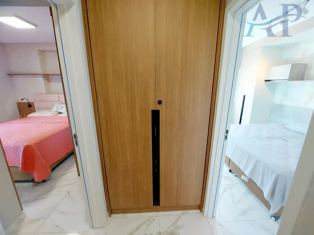 Mobiliado, ja´ com mo´veis planejados, fechamento de sacada, iluminac¸a~o moderna e alto padra~o em acabamento.