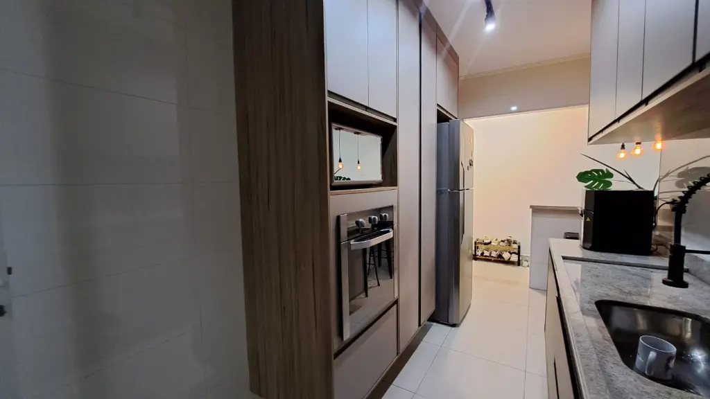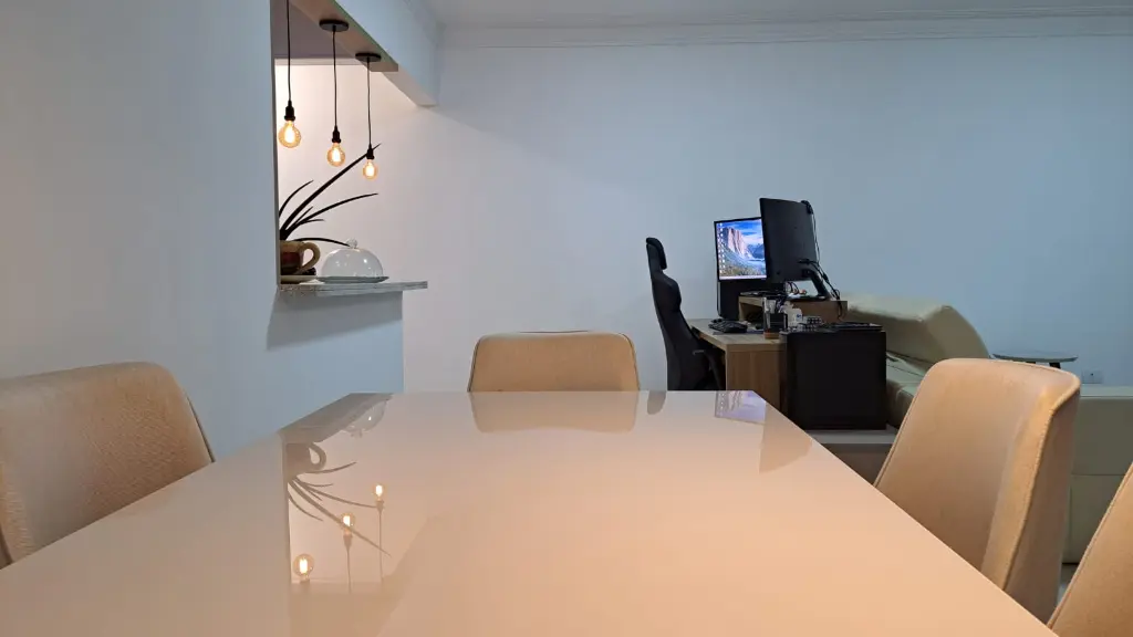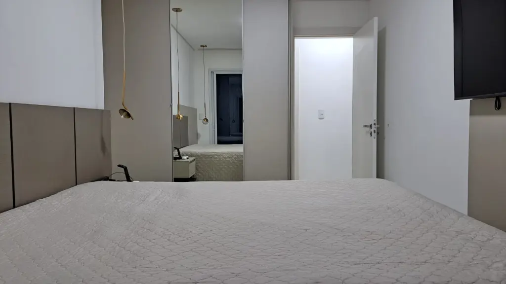 A sala é espaçosa e integrada à varanda gourmet, perfeita para receber amigos e familiares com uma vista incrível. O apartamento está totalmente mobiliado, com acabamento moderno e pronto para morar.