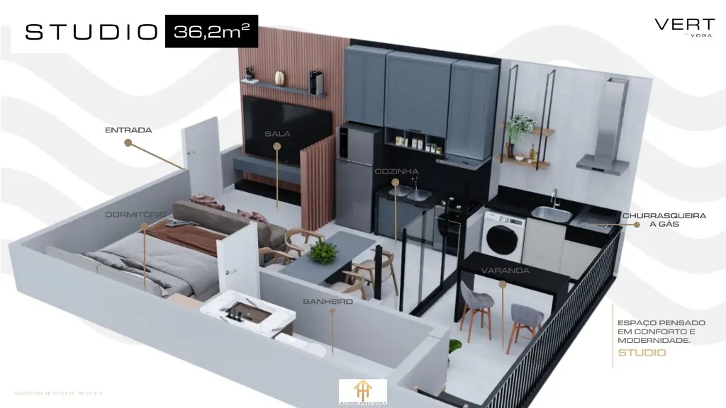 ? Studios integrados - 36,2m²