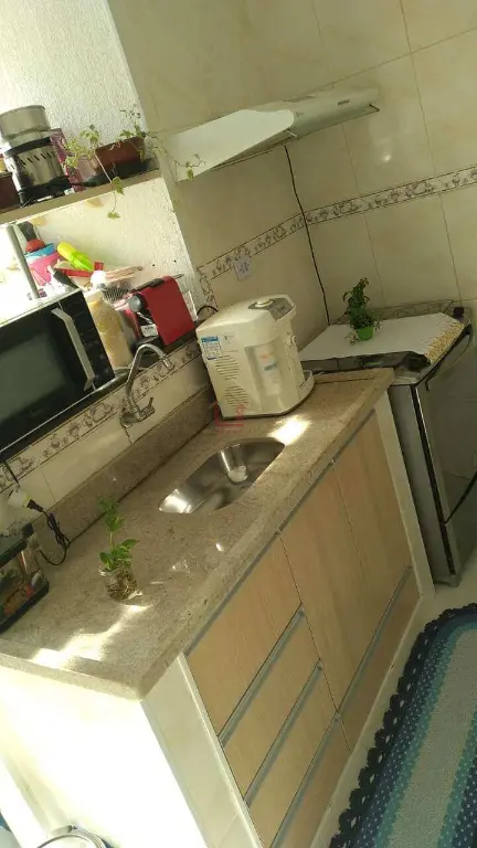 Pia em mármore, alvenaria e gabinete planejado