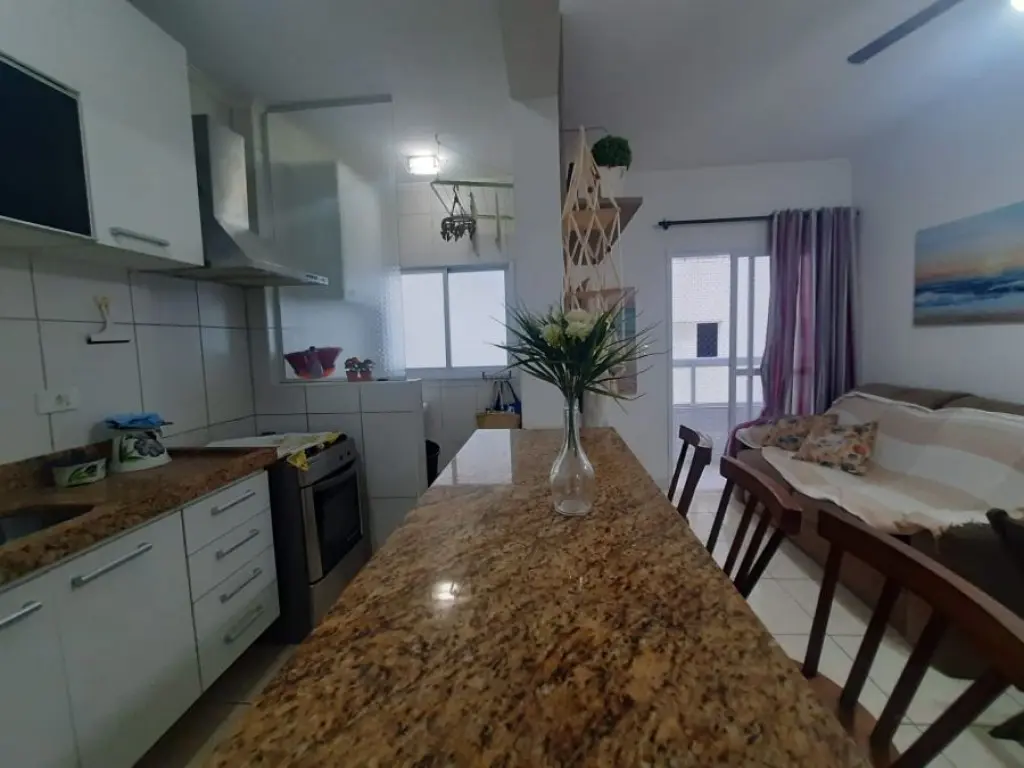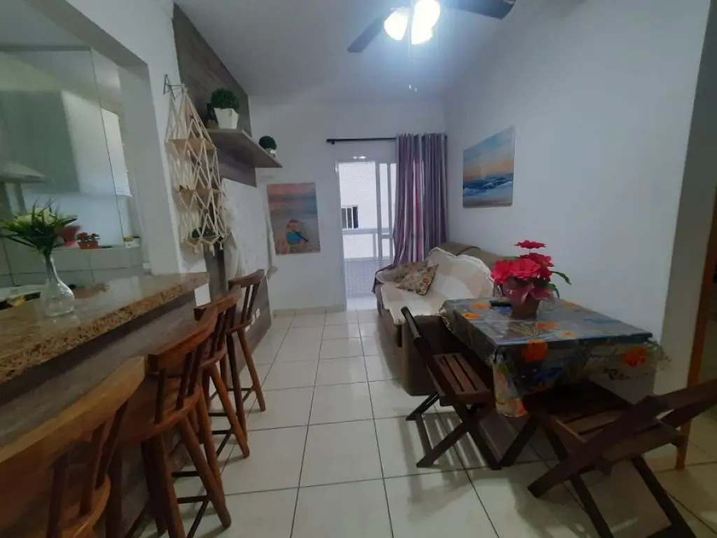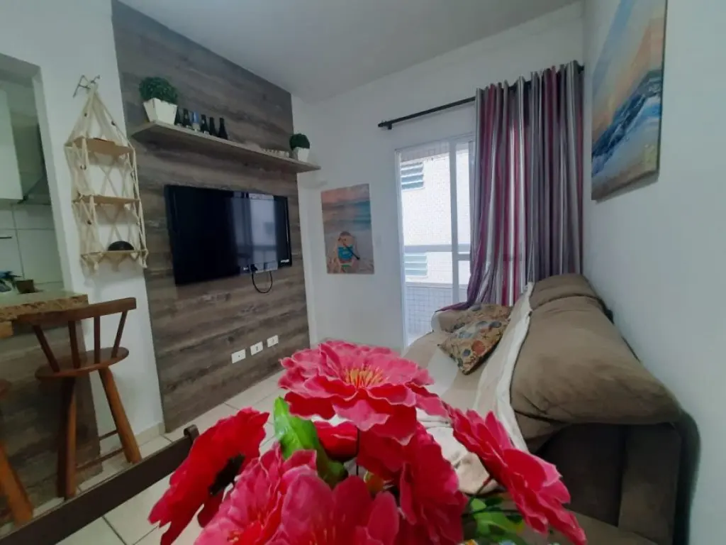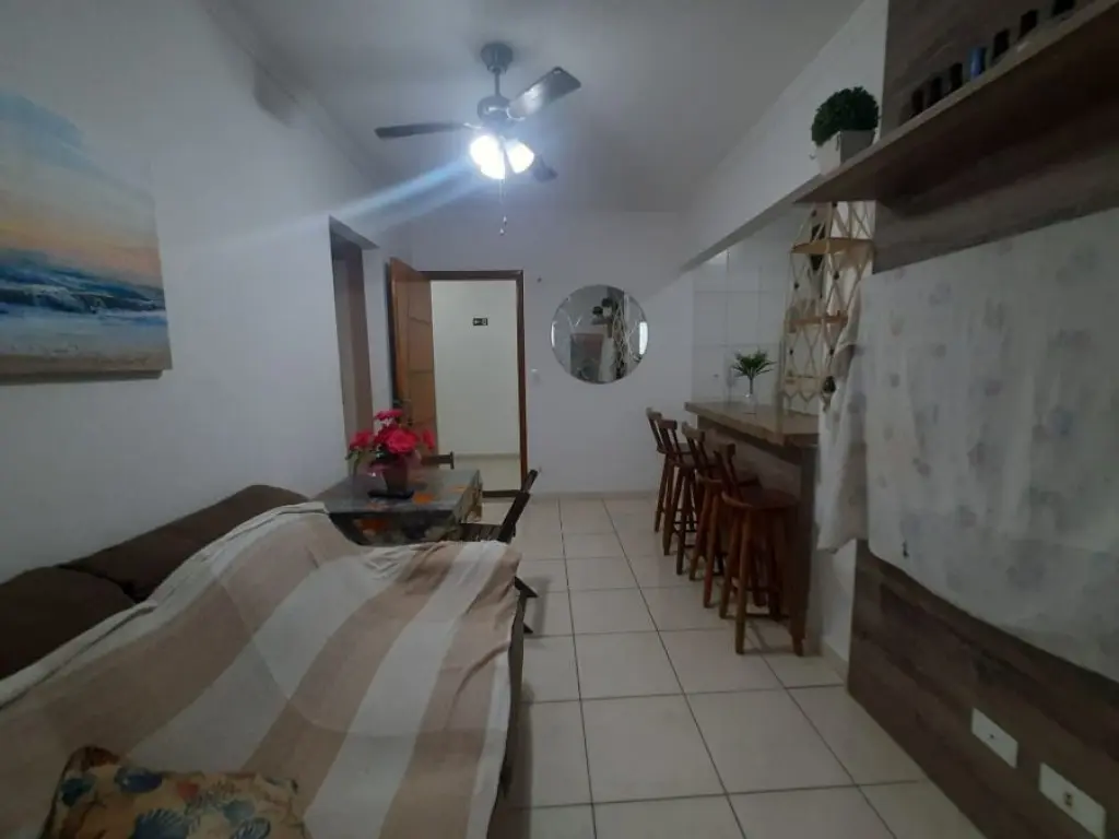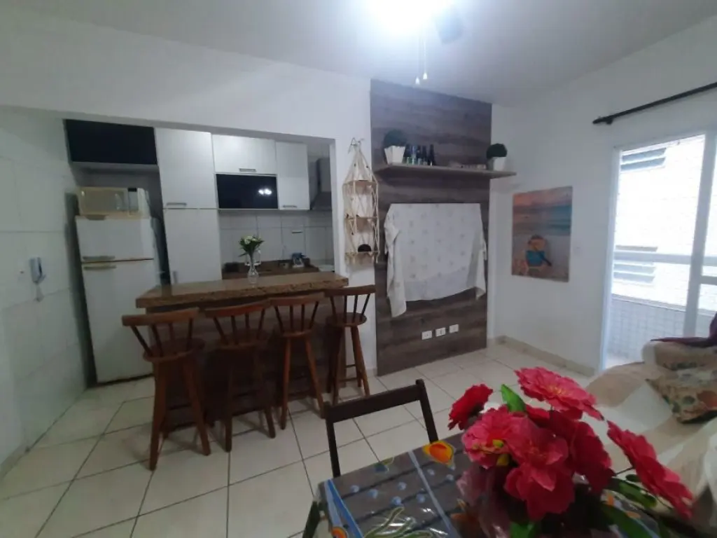 Agradável apartamento de 1 dormitório a apenas 50 metros do Mar em Vila Mirim Praia Grande SP ! Imóvel mobiliado sendo vendido na categoria Porteira fechada, pronto para seu uso particular ou locação para temporada !