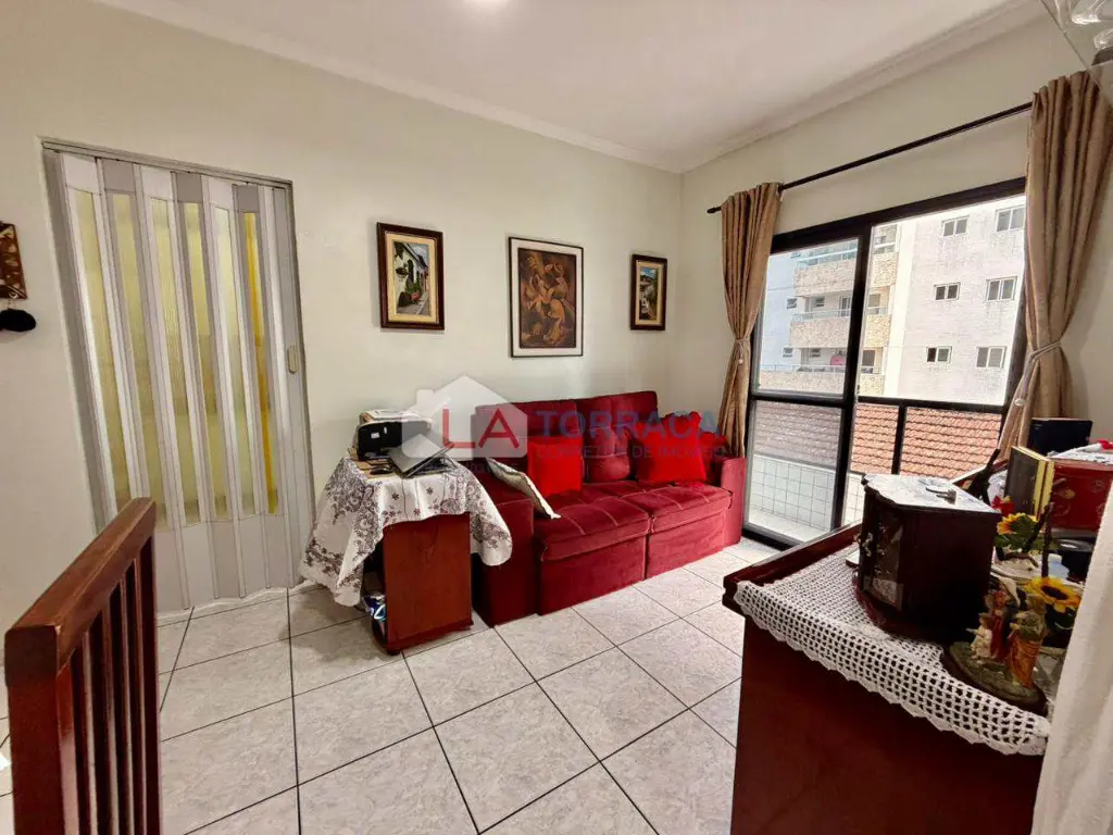 Referência 15852 - Apartamento há 500 metros da Praia, com 1 dormitório, sala com sacada, cozinha, área de serviço, banheiro. Prédio com elevador, salão de festas, portaria 24 horas, interfone, garagem coletiva. Excelente localização no bairro da Guilhermina em Praia Grande!