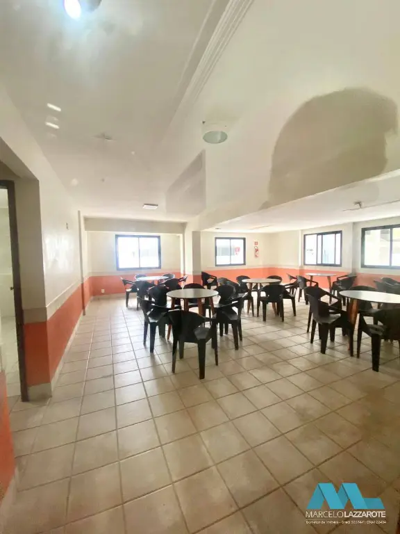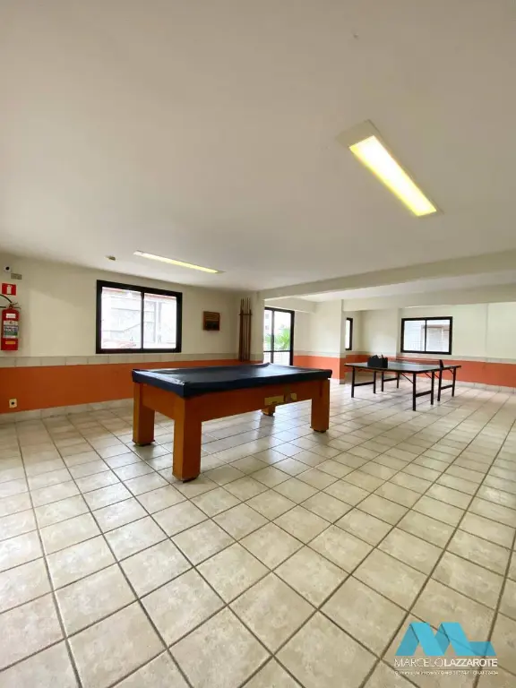 Condomínio com salão de festas, salão de jogos, 2 elevadores, interfone, portões automáticos e câmeras de monitoramento de segurança.