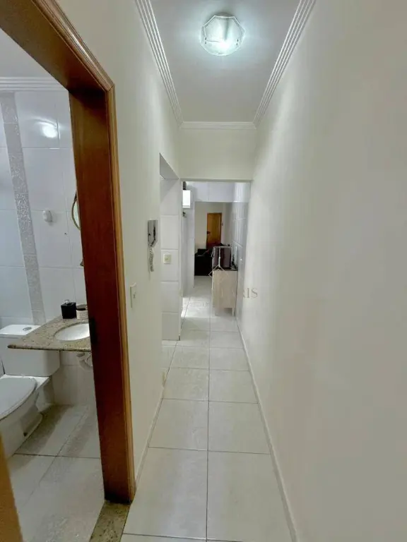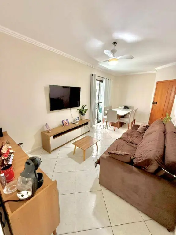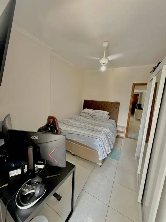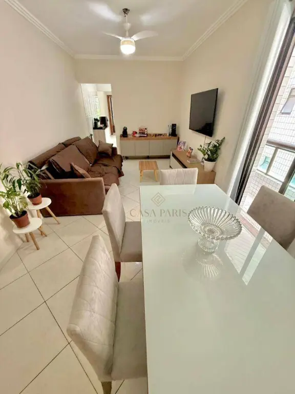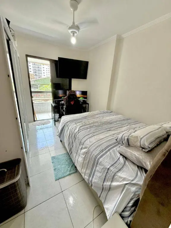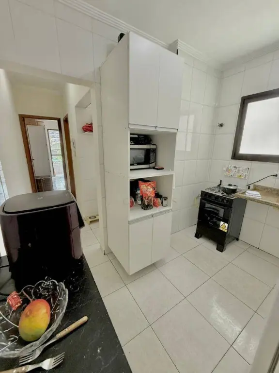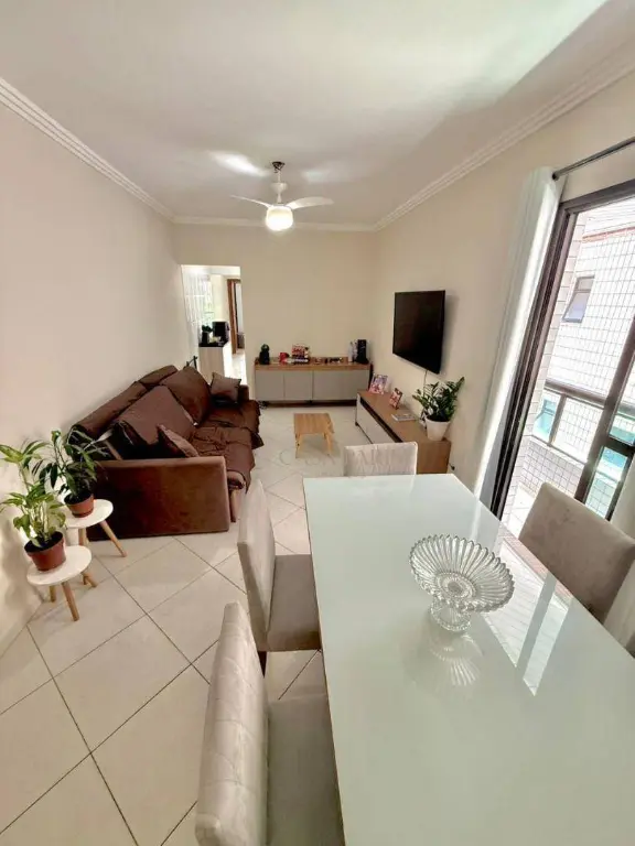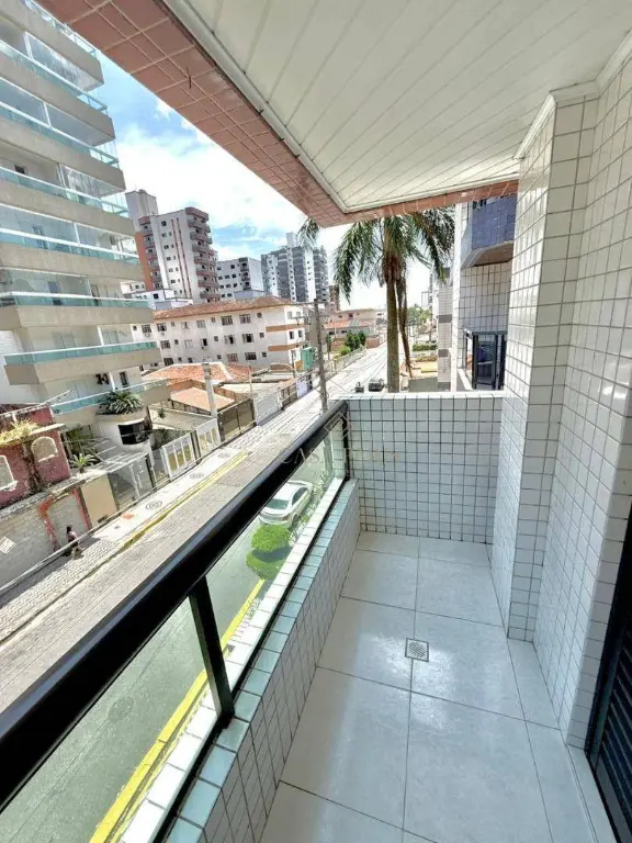 Apartamento à venda no bairro Vila Guilhermina, imóvel possui sacad frente rua, churrasqueira, sala 02 ambientes, cozinha, área de serviço, WC social, 01 dormitório com sacada e 01 vaga de garagem.