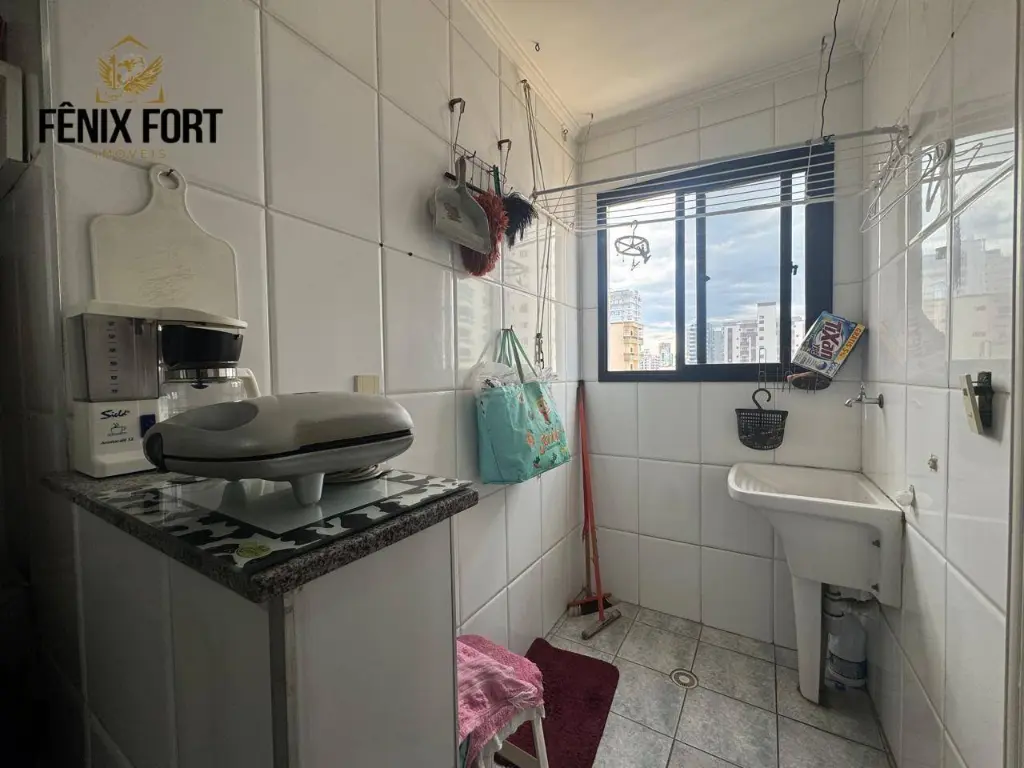 O imóvel conta com 58,00m² de área útil, distribuídos em 1 dormitório, sala com sacada com VISTA PARA O MAR, 2 banheiros social, cozinha espaçosa com móveis planejados, área de serviço e 1 vaga de garagem.