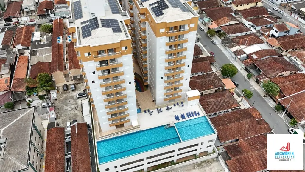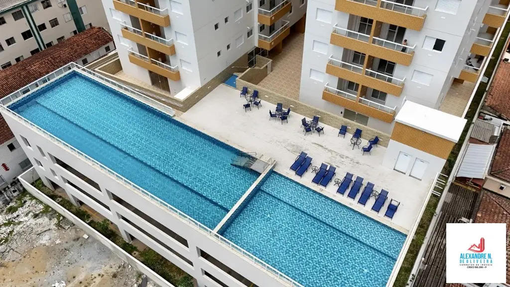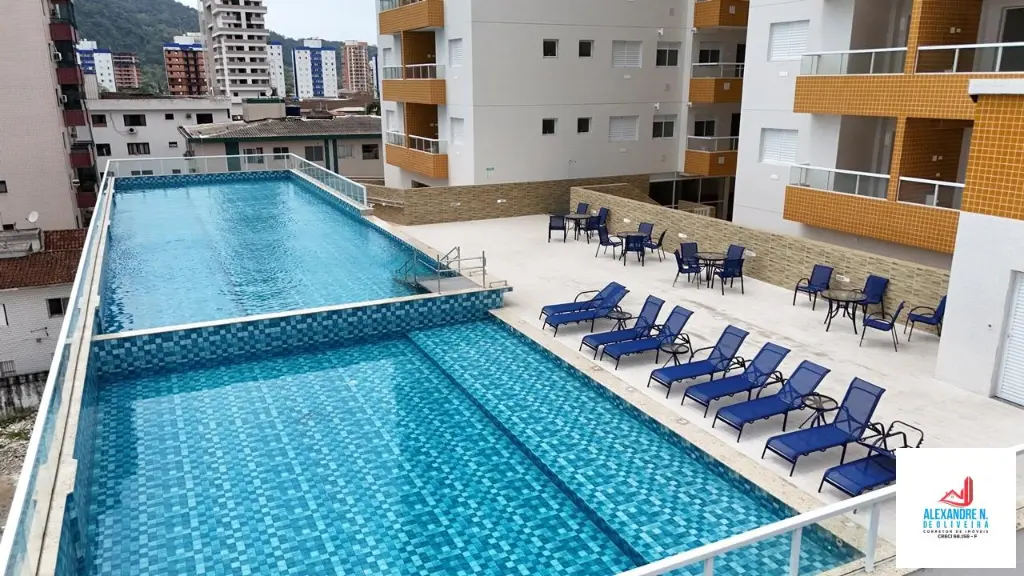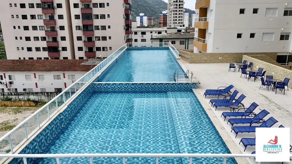 - Pontos Fortes: Apartamento novo de 2 dormitórios, suíte, sala 2 ambientes com sacada, cozinha integrada, banheiro, área de serviço, garagem, prédio com 2 elevadores, salão de jogos, salão de festas, piscinas adulto e infantil, espaço fitness, spa center, saunas, playground, pista de boliche, espaço gourmet, à 500 metros da praia, no bairro do Boqueirão, em Praia Grande.