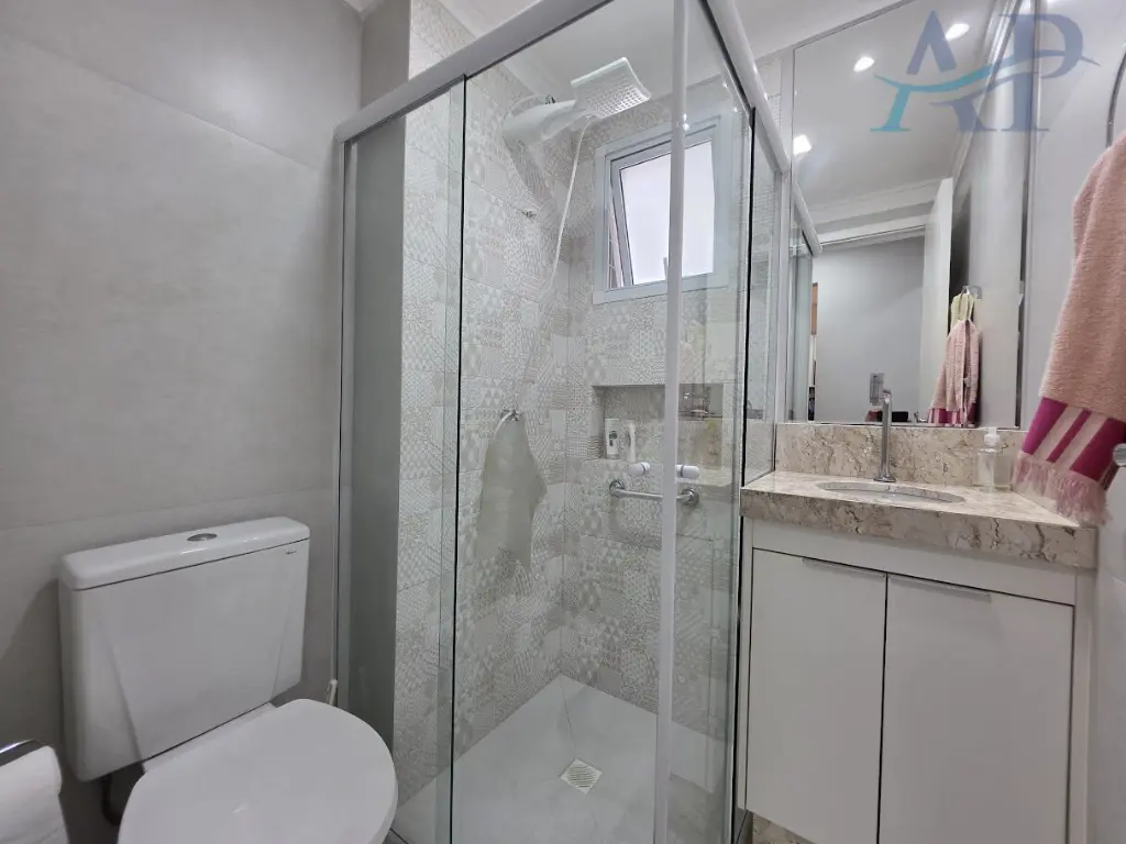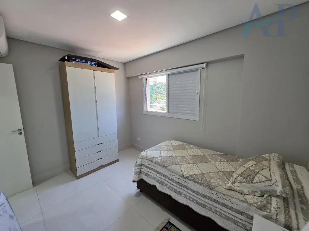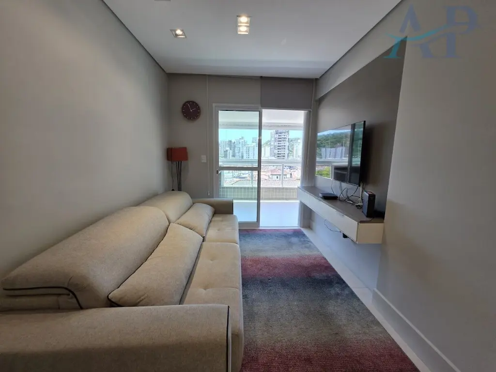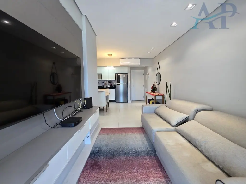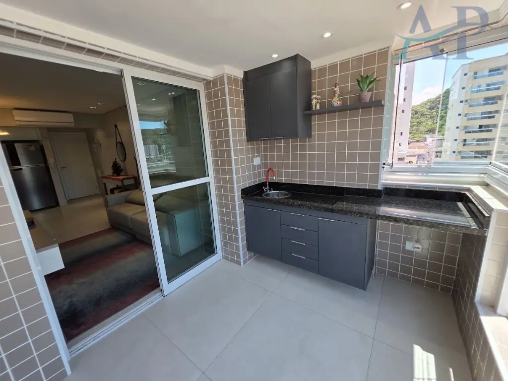 Imo´vel com excelente padra~o em acabamento, de dois dormito´rios, sendo um deles sui´te, sala para dois ambientes, varanda Gourmet com sol da manha~ e vista livre para o Morro do Xixova´, cozinha ampla estilo americana, a´rea de servic¸o, ar-condicionado e uma vaga de garagem.