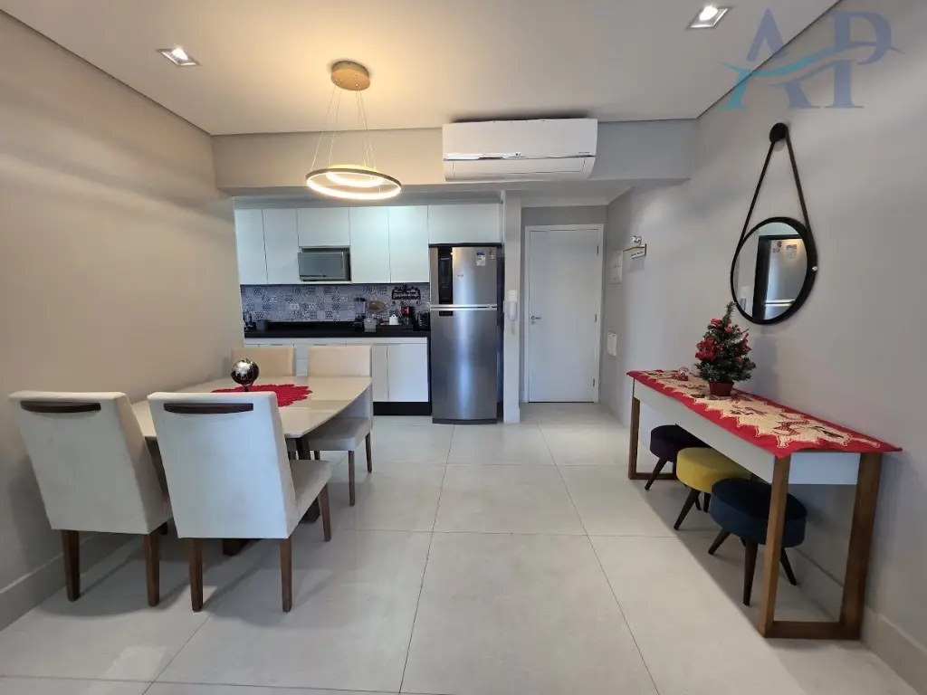 Mobiliado, sacada ja´ com fechamento, teto rebaixado no gesso e iluminac¸a~o moderna em Led. Ira´ retirar somente as 2 TVs e os objetos pessoais ( utensi´lios de cozinha/cama/mesa e banho).