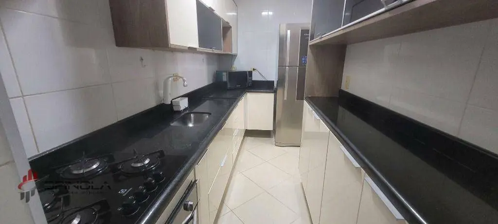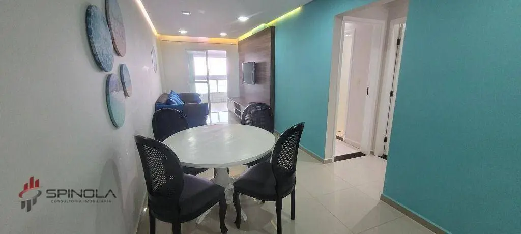 Este apartamento possui 85 m² de área útil distribuídos em 2 dormitórios sendo 1 suíte, dormitórios com acesso a sacada, 1 sala dois ambientes, 1 sacada Varanda gourmet) este apto é td avarandado e com vista permanente para o mar. 2 banheiros no total, 1 cozinha, 1 área de serviço, garagem para 1 automóvel, prédio com elevador