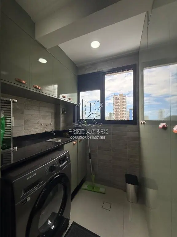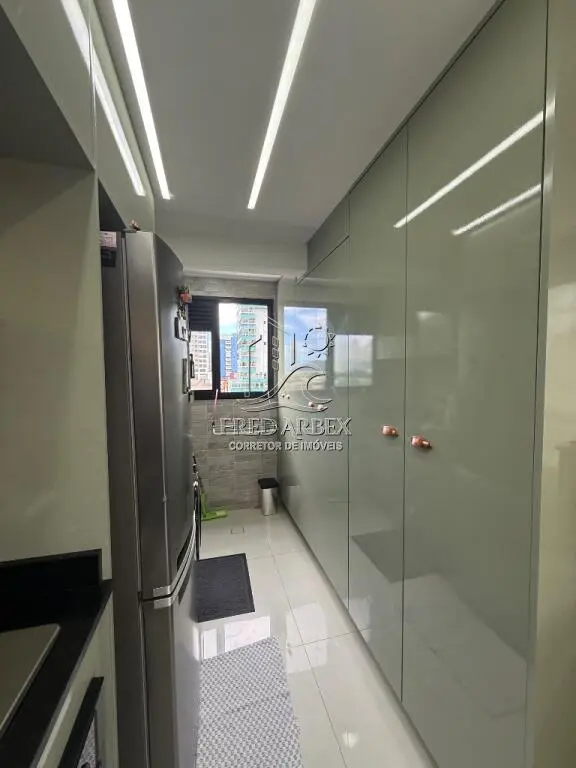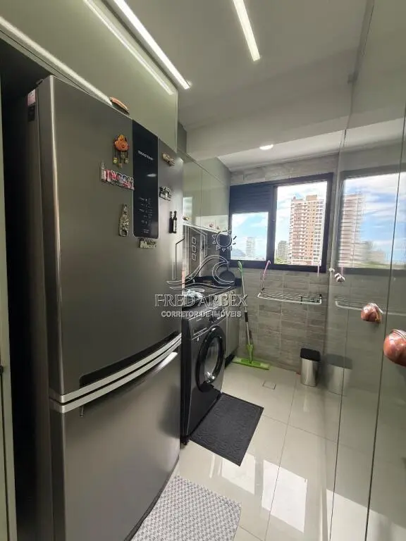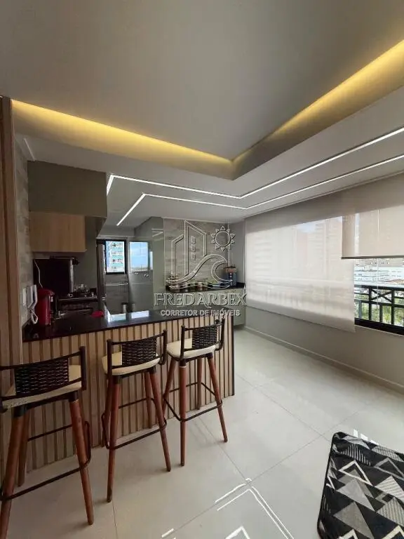 O apartamento está completamente mobiliado, com acabamento de qualidade, incluindo azulejo até o teto, janelas de alumínio e box Blindex. A cozinha americana planejada e o dormitório também são planejados, garantindo funcionalidade e estilo. A sacada envidraçada proporciona uma vista agradável e um ambiente convidativo para momentos de relaxamento.
