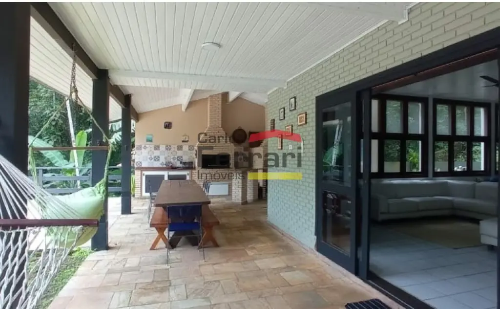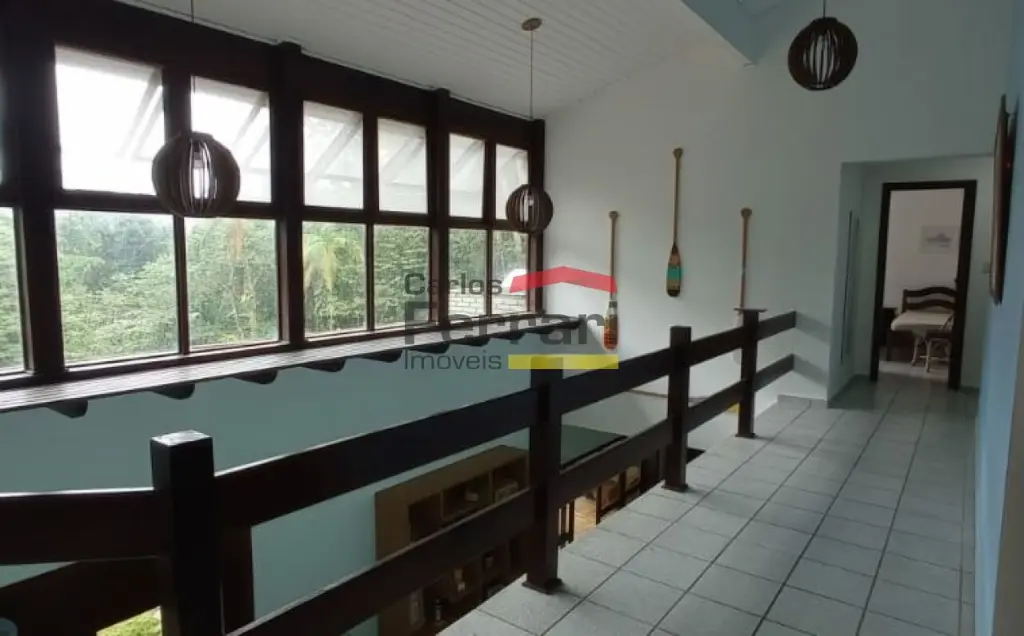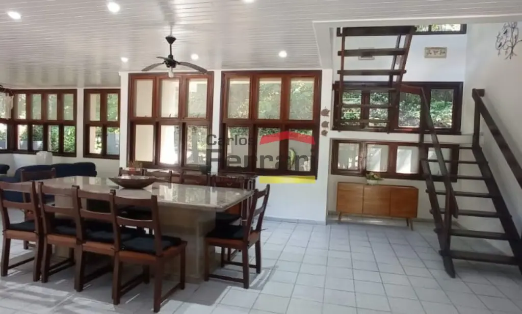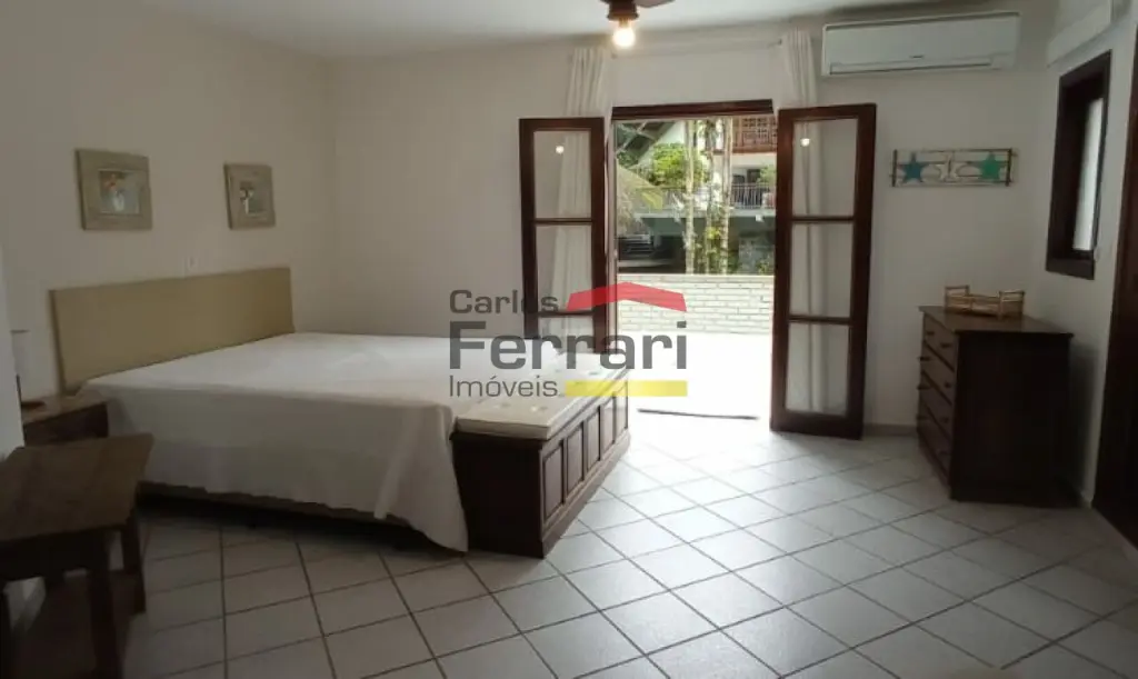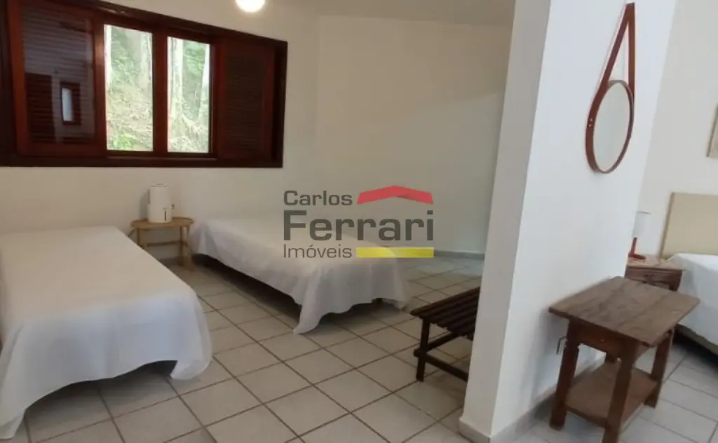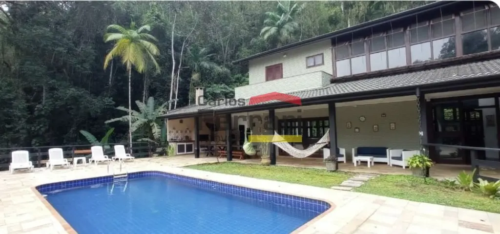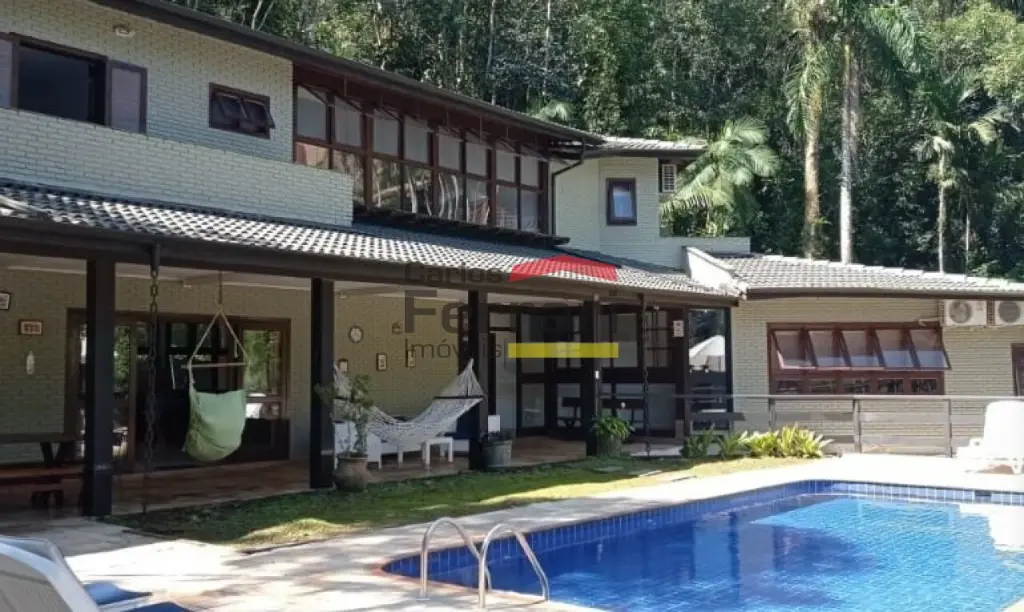 Casa na Praia Domingas Dias em Ubatuba, com 420 m² de área construída, 6 quartos, sendo 5 suítes, 5 vagas de garagem e área de lazer com piscina e espaço gourmet. Imóvel localizado a aproximadamente 3 minutos a pé da praia, em rua sem saída, tranquila e arborizada, em região de mar calmo.