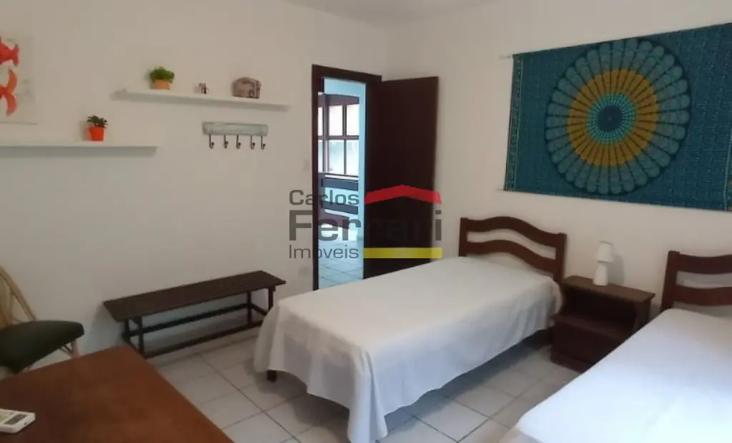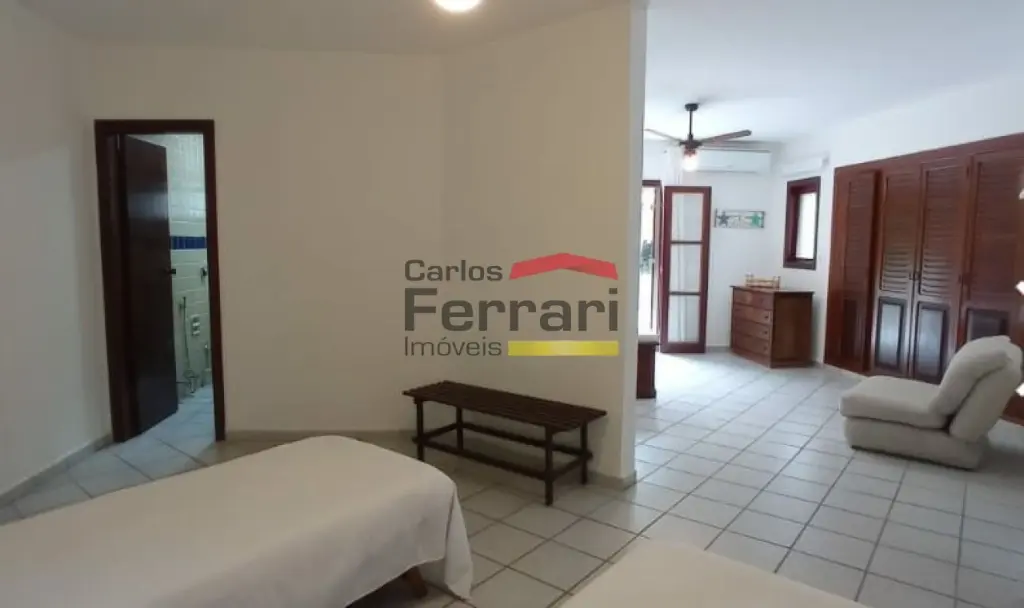O imóvel conta com 6 dormitórios no total, sendo 5 suítes. A suíte localizada no térreo é conjugada com um quarto adicional. Todos os dormitórios possuem ar-condicionado, ventiladores e chuveiros com sistema de boiler e/ou elétrico.