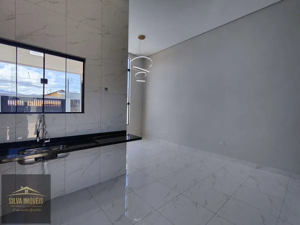 Belíssima Casa Nova, 02 dormitórios sendo 01 suíte, bairro residencial de Mongaguá, boa localização, próximo aos principais comércios da região.Acabamento de Alta Qualidade, piso porcelanato, pé direito duplo, portão automático.