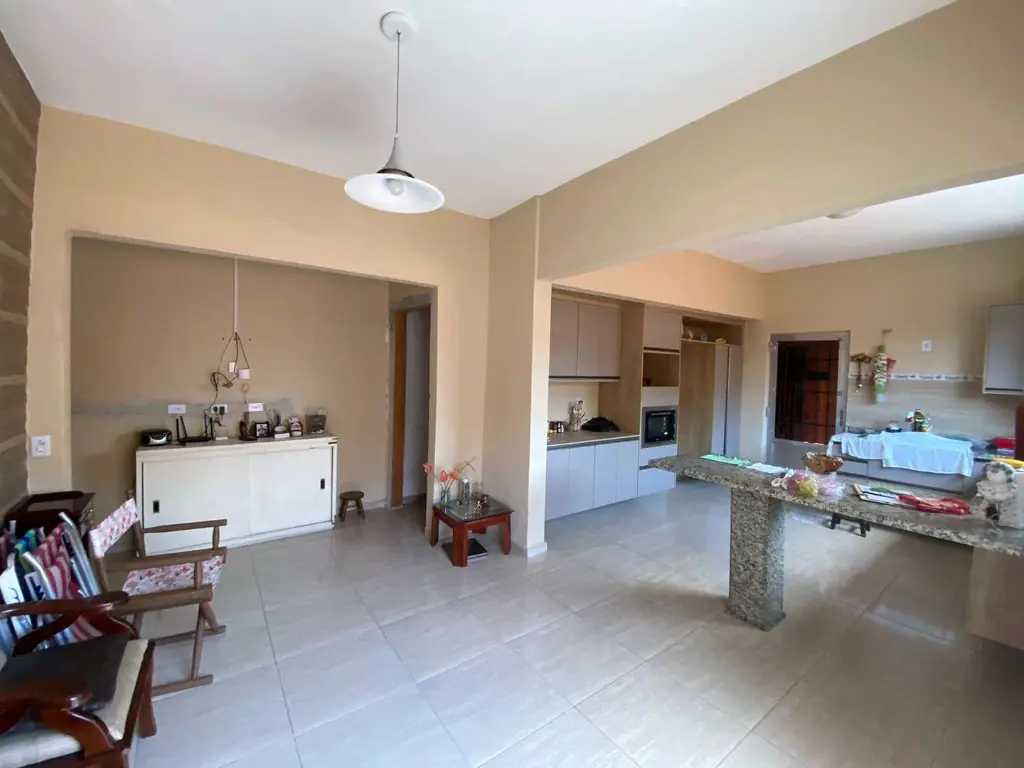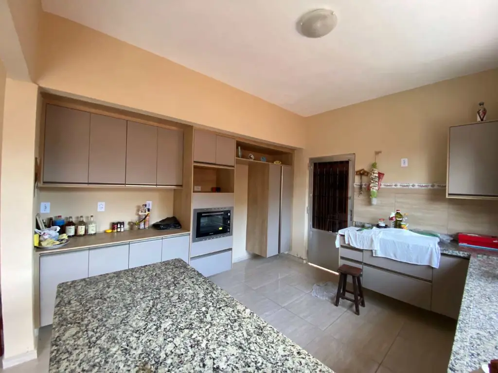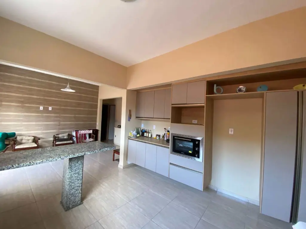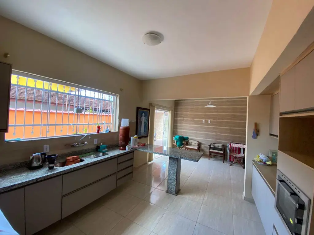 Composta por 03 dormitórios, sendo 01 suíte com closet, sala ampla, cozinha americana, banheiro social, lavabo e ducha externa, área de serviço, canil, área coberta com pia, churrasqueira, forno e fogão à lenha, depósito, jardim amplo, 04 vagas de garagem, espaço para piscina ou construção.