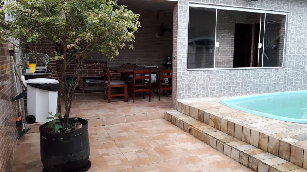 Casa isolada próxima ao mar em Vila Caiçara contendo 2 dormitórios sendo 1 suite, sala 2 ambientes, cozinha, piscina, área de churrasco com forno e fogão a lenha, edicula com wc, salçao de jogos com lavanderia, com 4 vagas de garagem e a 300 metros do mar.