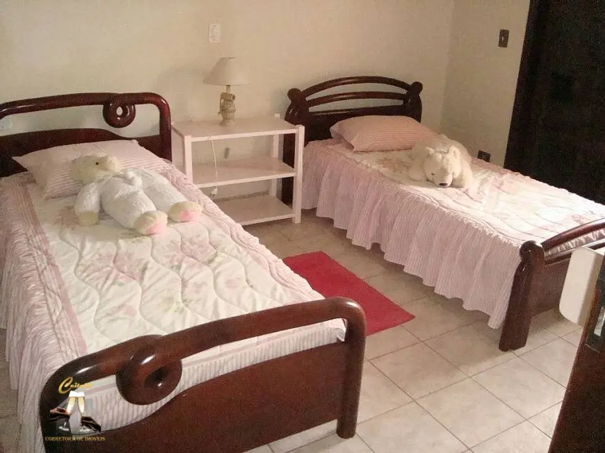 Piso te´rreo: uma sui´te com cama de casal e uma cama de solteiro, e um quarto bem espac¸oso com 3 camas de solteiro.