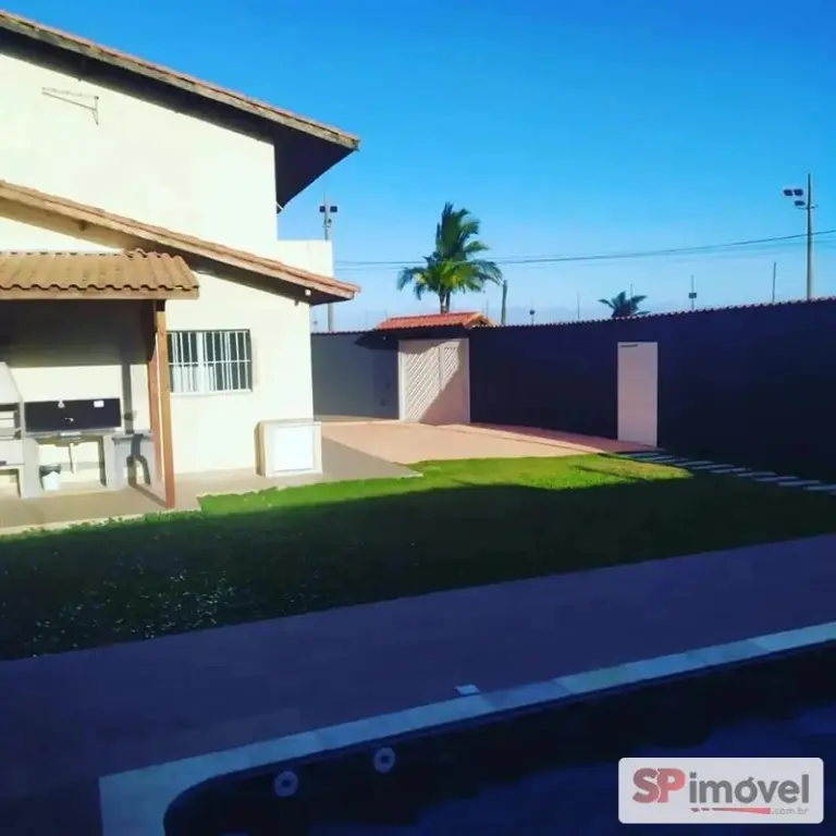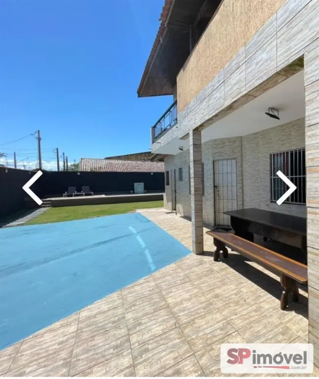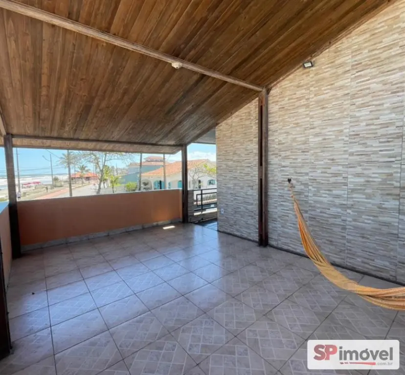 Imóvel com piscina, amplo quintal e de frente para o mar. Excelente localização, próximo ao centro de Mongaguá e plataforma de pesca. Aceita financiamento.