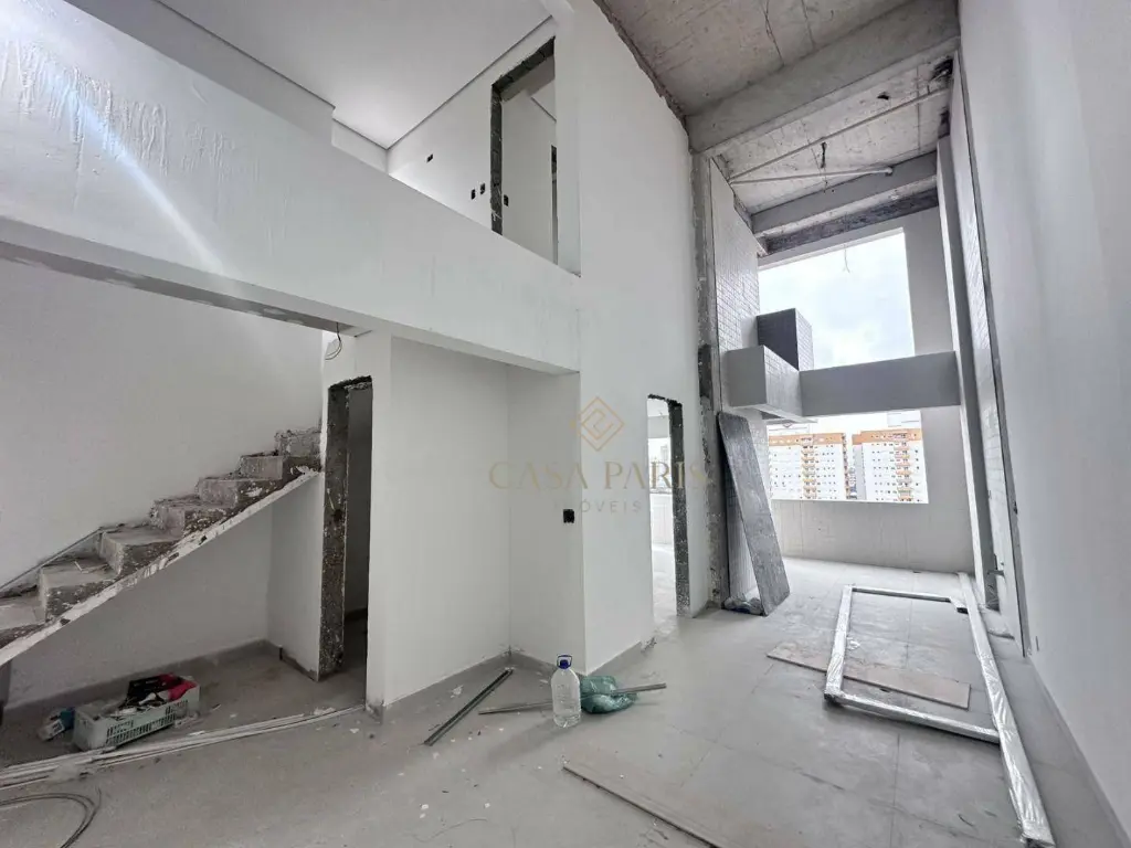 Apartamento duplex com 3 suítes, sala para dois ambientes, varanda gourmet, cozinha, área de serviço, lavabo e 2 vagas de garagem.