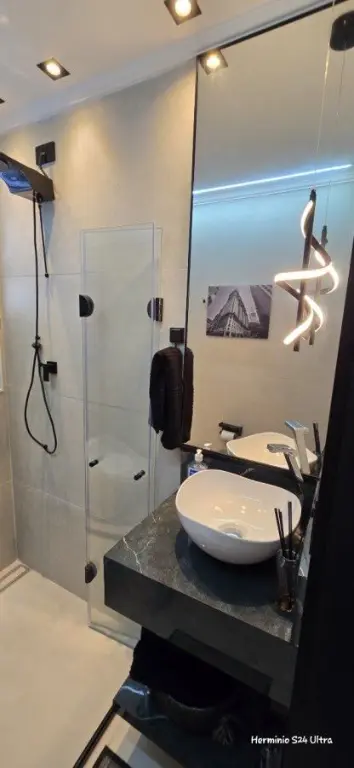 Box Banheiro, Iluminação em Led, Janelas em Alumínio, Teto em gesso, Piso Porcelanato.
