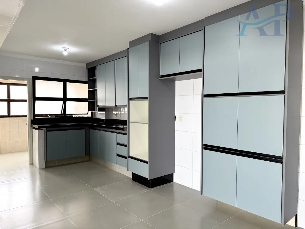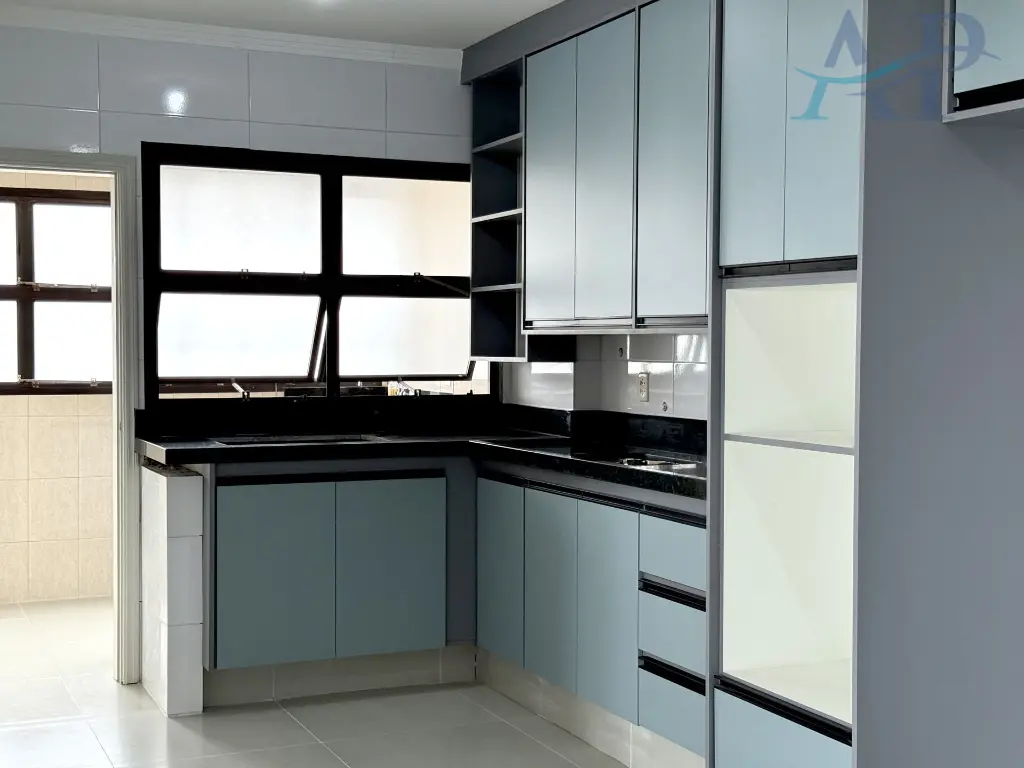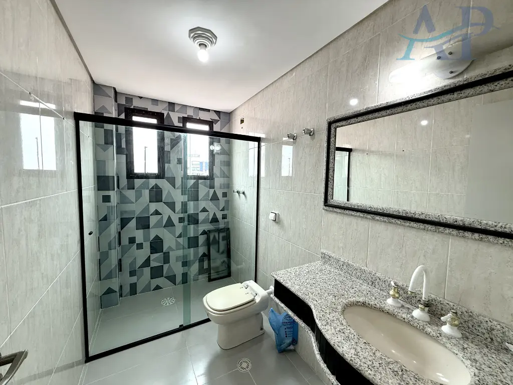 Com três dormitórios, sendo duas suítes, cozinha bem ampla, sala para dois ambientes, área de serviço, banheiro social e 2 vagas de garagem demarcadas.