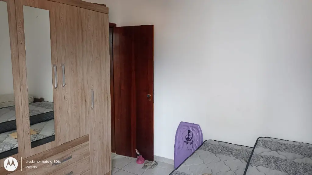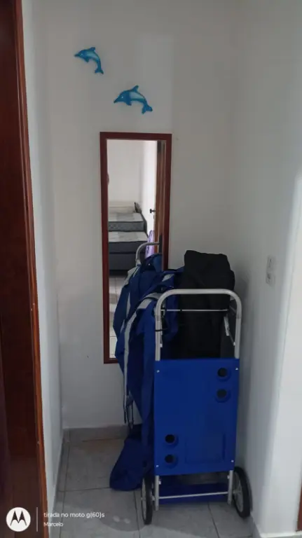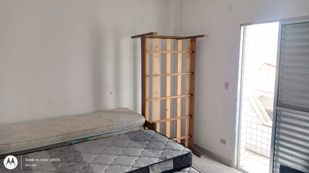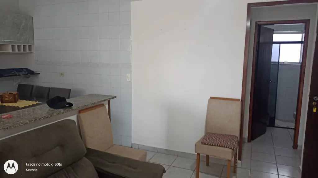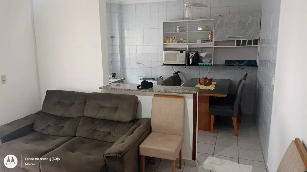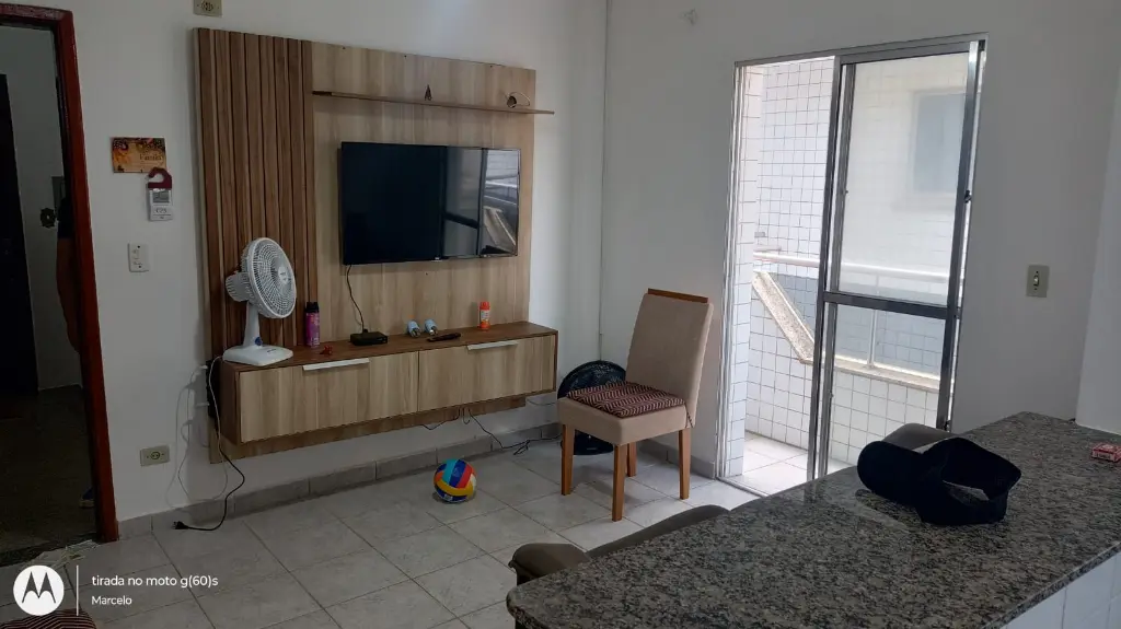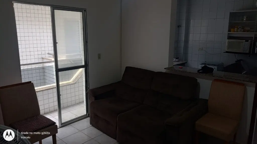 Apartamento contendo 1 dormitório, sala e quarto com sacadas, cozinha americana, área de serviço, vaga de garagem localizado no 2º andar em prédio de escada e a cerca de 350 metros do mar.