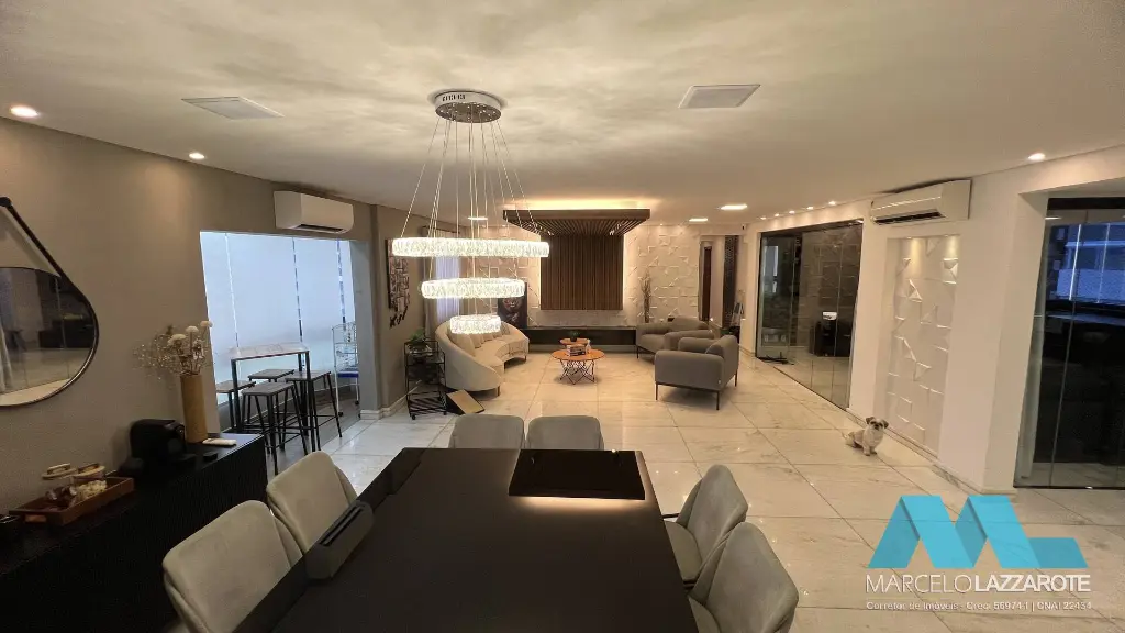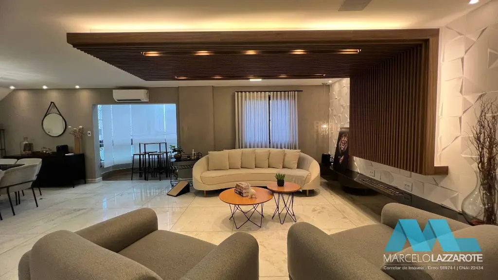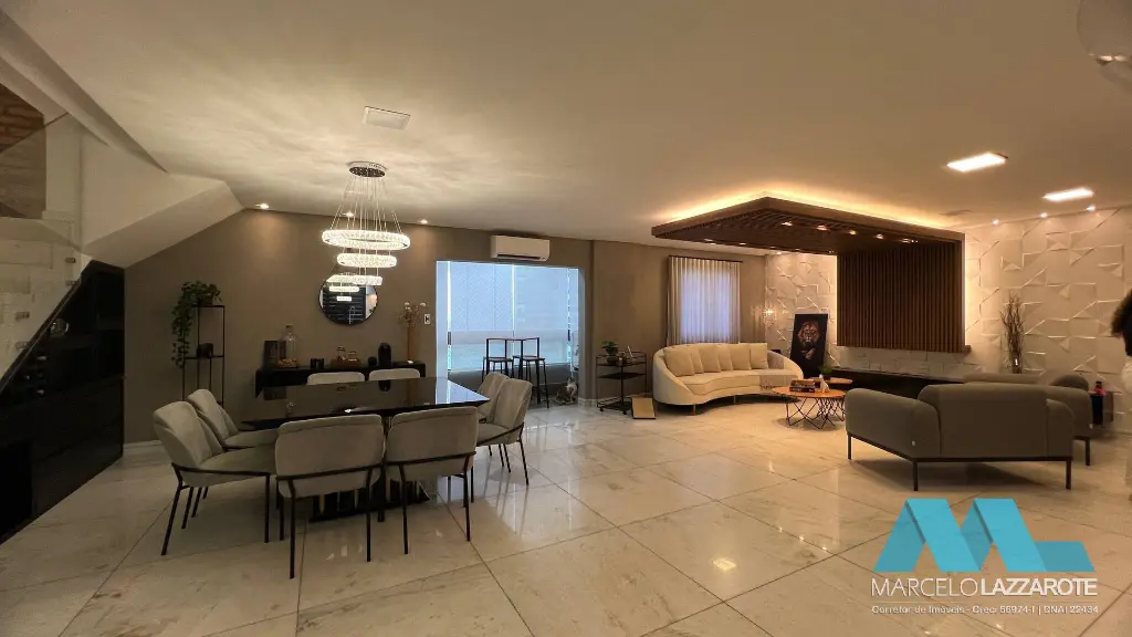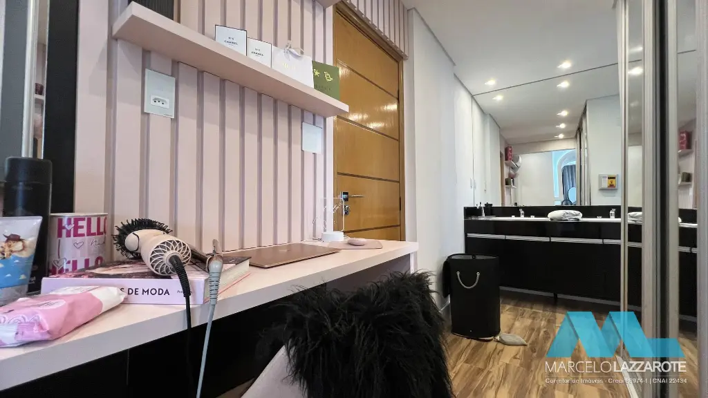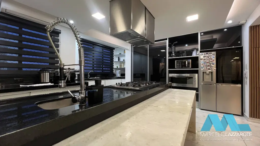 closet, sauna e hidro), sala ampla para 3 ambientes, cozinha com armários planejados, sacada ampla gourmet com churrasqueira, 5 banheiros, área de serviço e 3 vagas de garagem garantindo segurança para seu veículo. (Piscina privativa e espaço de jogos)