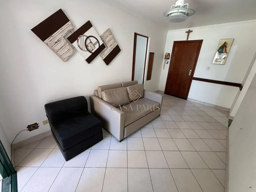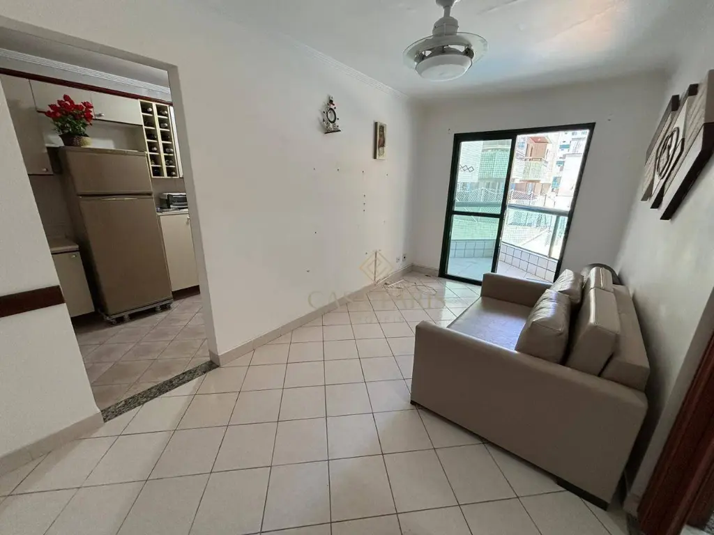 Apartamento com vista lateral do mar, sala ampla para 02 ambientes, cozinha, área de serviço privativa, banheiro social, 01 dormitório muito bem distribuido e 01 vaga de garagem.