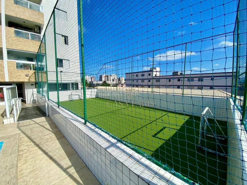 Residencial oferece elevador, piscina, campo de futebol, salão de jogos, salão de festas, brinquedoteca e academia.