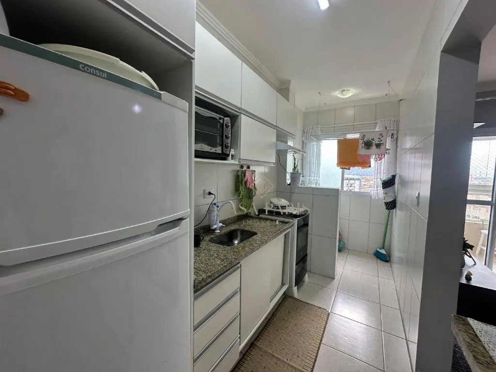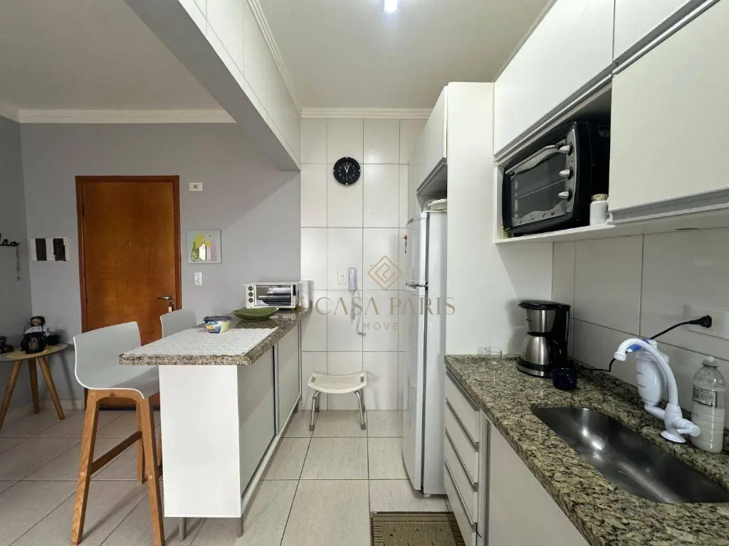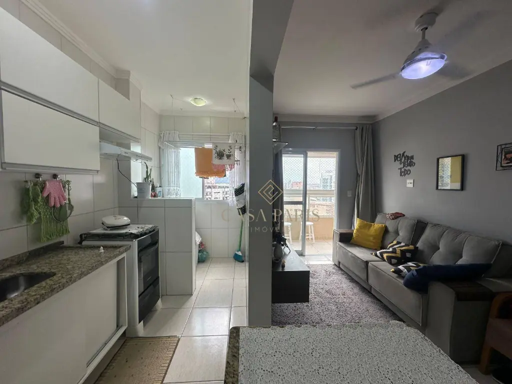 Apartamento à venda no bairro Vila Caiçara, imóvel possui 01 dormitório, varanda gourmet com churrasqueira, sala 02 ambientes, cozinha, área de serviço, WC social e 01 vaga de garagem.