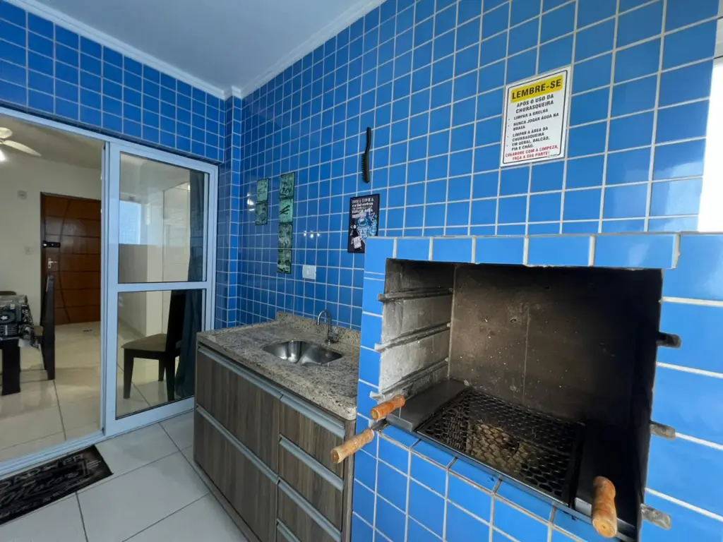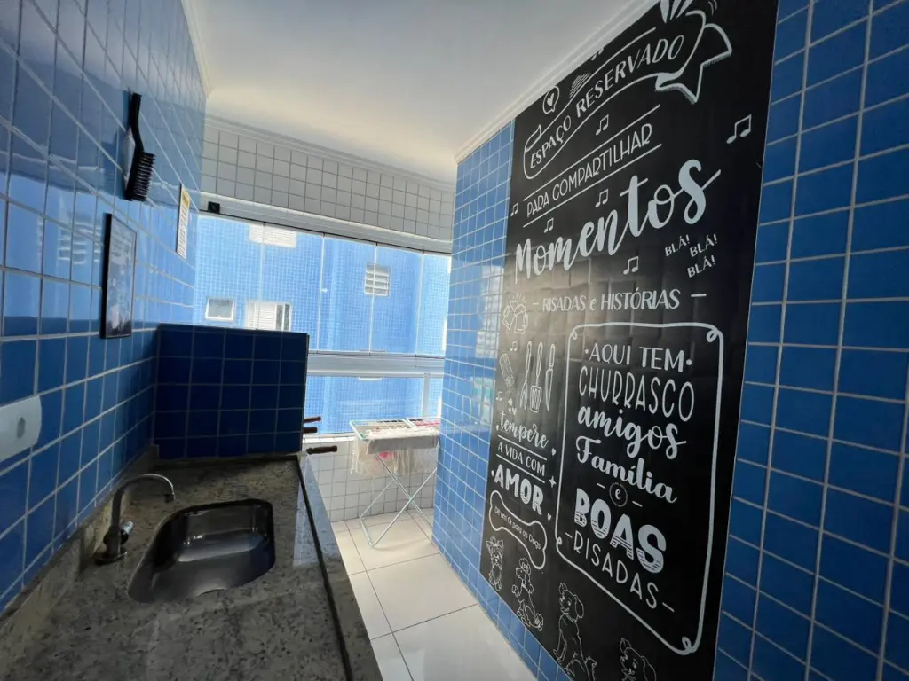 - Varanda gourmet com pia, gabinete e churrasqueira