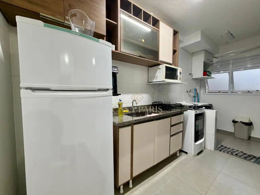 Imóvel com 01 dormitório reformado, sala ampla para 02 ambientes, cozinha clara e arejada, área de serviço, banheiro social, sacada, 01 vaga de garagem demarcada, bem claro e arejado. Imóvel será vendido mobiliado!