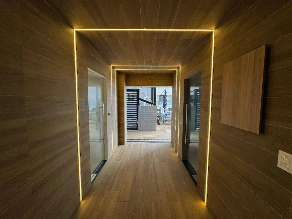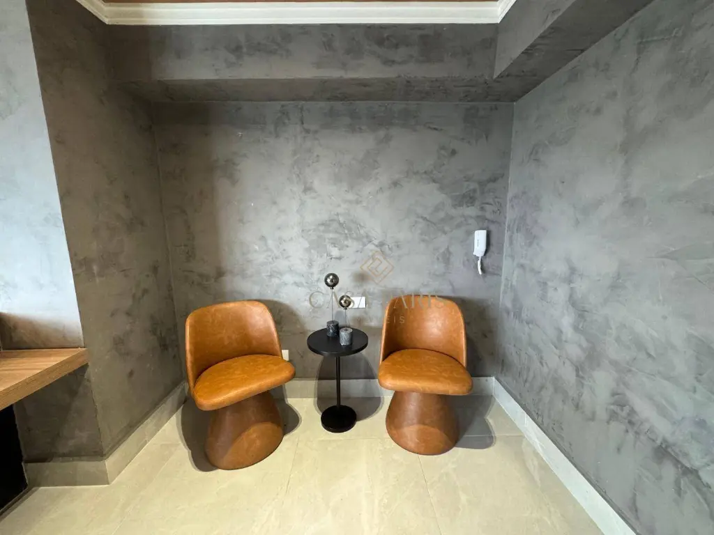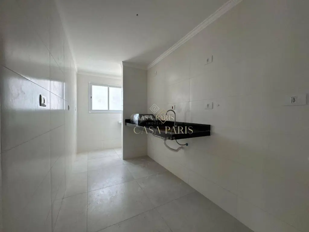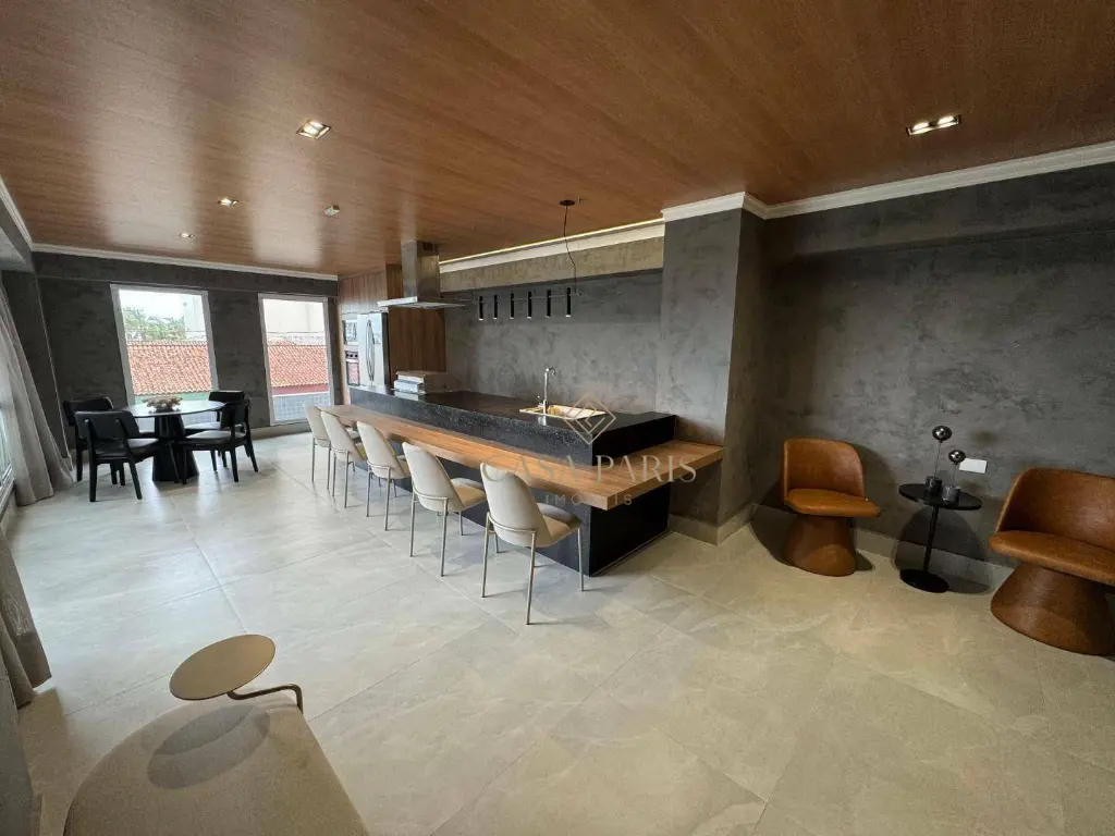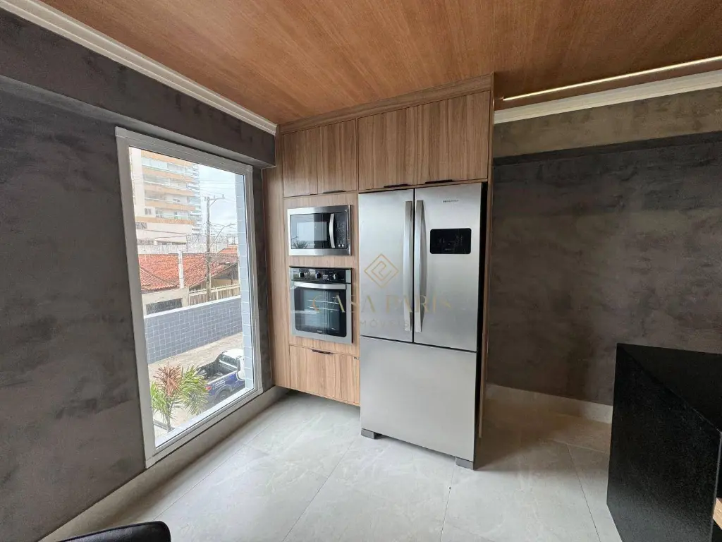 Apartamento com 1 dormitório, varanda gourmet com vista mar, sala 2 ambientes, cozinha, área de serviço, banheiro social e 1 vaga de garagem. Piso porcelanato, forro de gesso na cozinha, banheiro e varanda, churrasqueira à gás, pisos e lavatórios em granito, infraestrutura para ar condicionado.