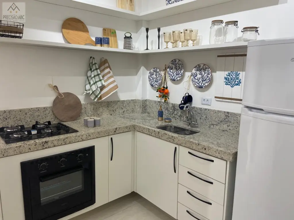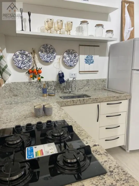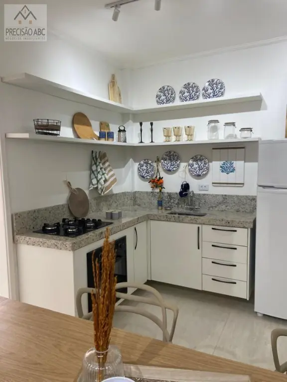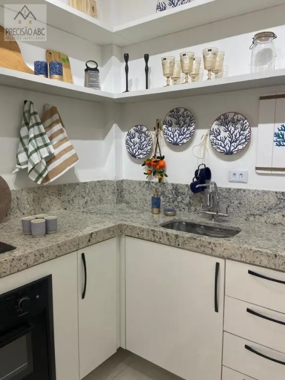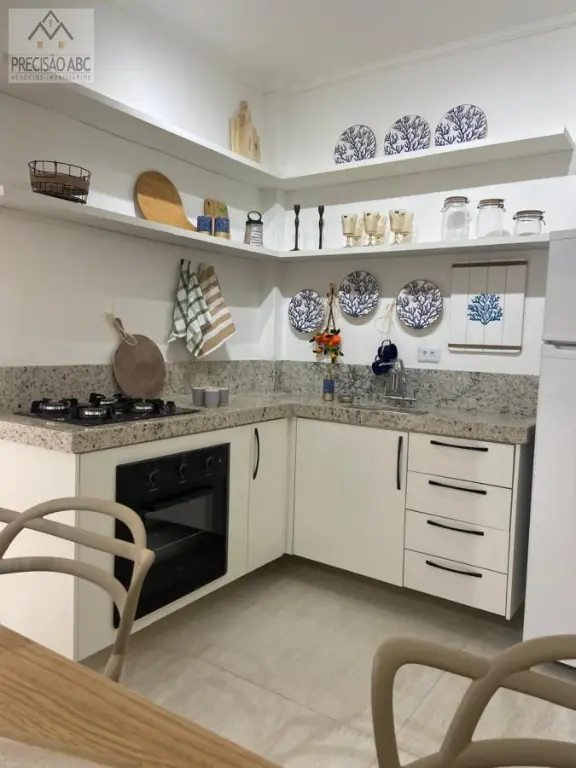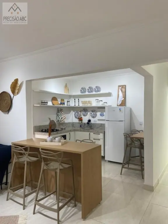 2 dormitórios (1 suíte), sala 2 ambientes mobiliada com terracinho, cozinha planejada com eletrodomésticos, banheiros sociais com boxes de vidros, pisos de cerâmica, área de serviços, 1 vaga rotativa no estacionamento, 3 unidades por andar, elevador social, portaria e segurança 24 horas, excelente localização, 3 quadras da praia, fácil acesso as Rodovias Anchieta e Imigrantes.