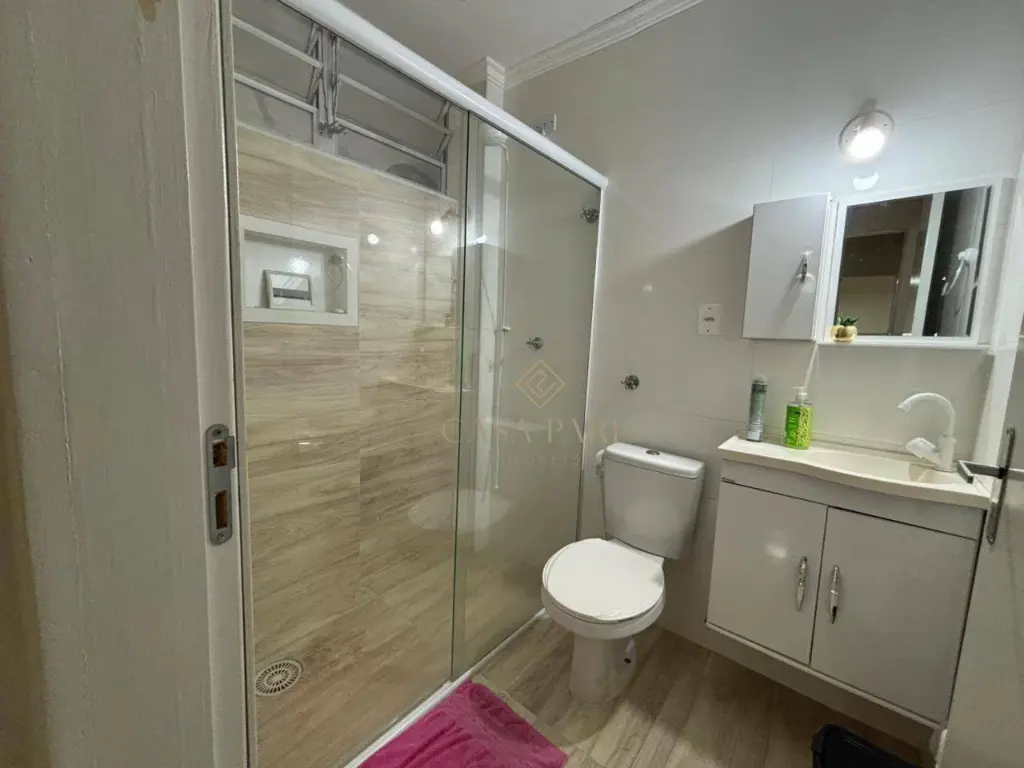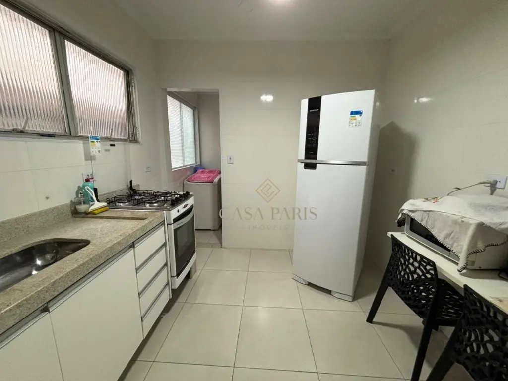São 2 dormitórios, sala para dois ambientes, cozinha, banheiro, área de serviço e 1 vaga de garagem.