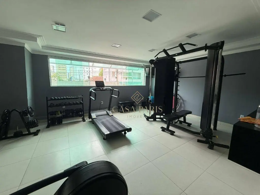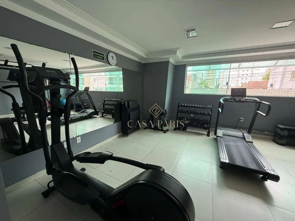 Residencial oferece elevador, piscina e academia.