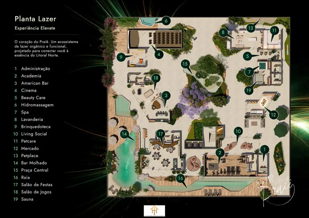 O grande destaque fica por conta da piscina natural, um verdadeiro convite ao relaxamento, que recria a sensação de uma praia privativa dentro do condomínio, com paisagismo integrado e elementos naturais que transformam o dia a dia em uma experiência única.