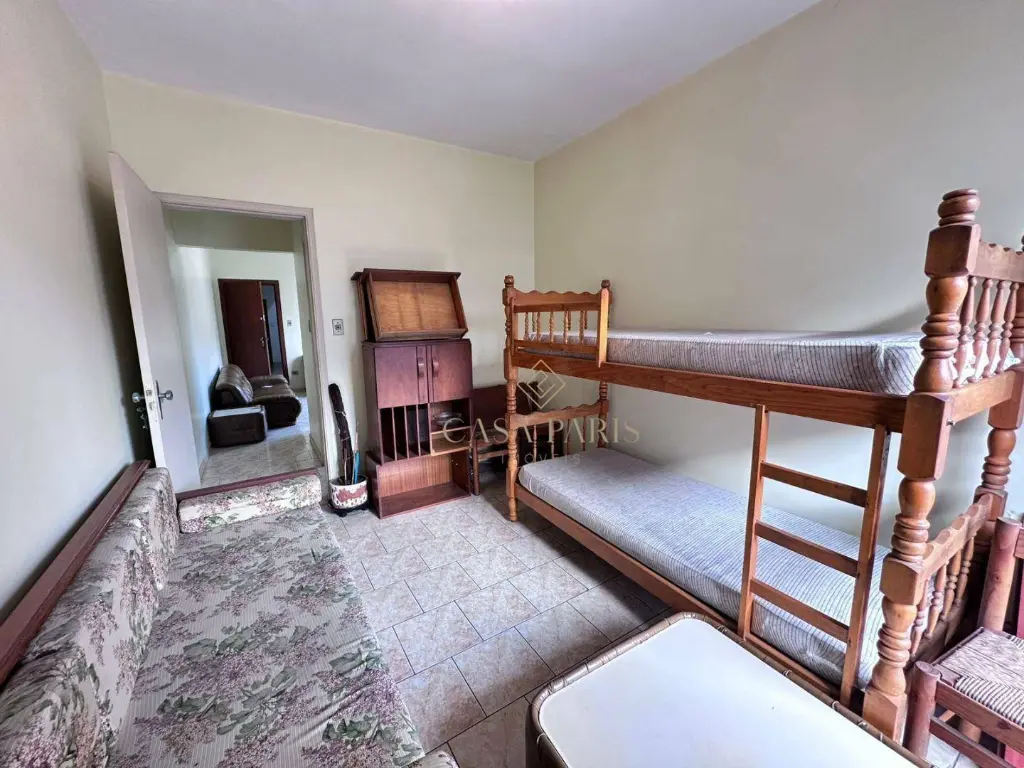 Apartamento contendo 64m² de área útil distribuídos em 02 dormitórios, os dois com sacada e vista lateral mar, sala ampla com sacada para rua, cozinha espaçosa com área de serviço, banheiro social e 01 vaga de garagem coletiva.