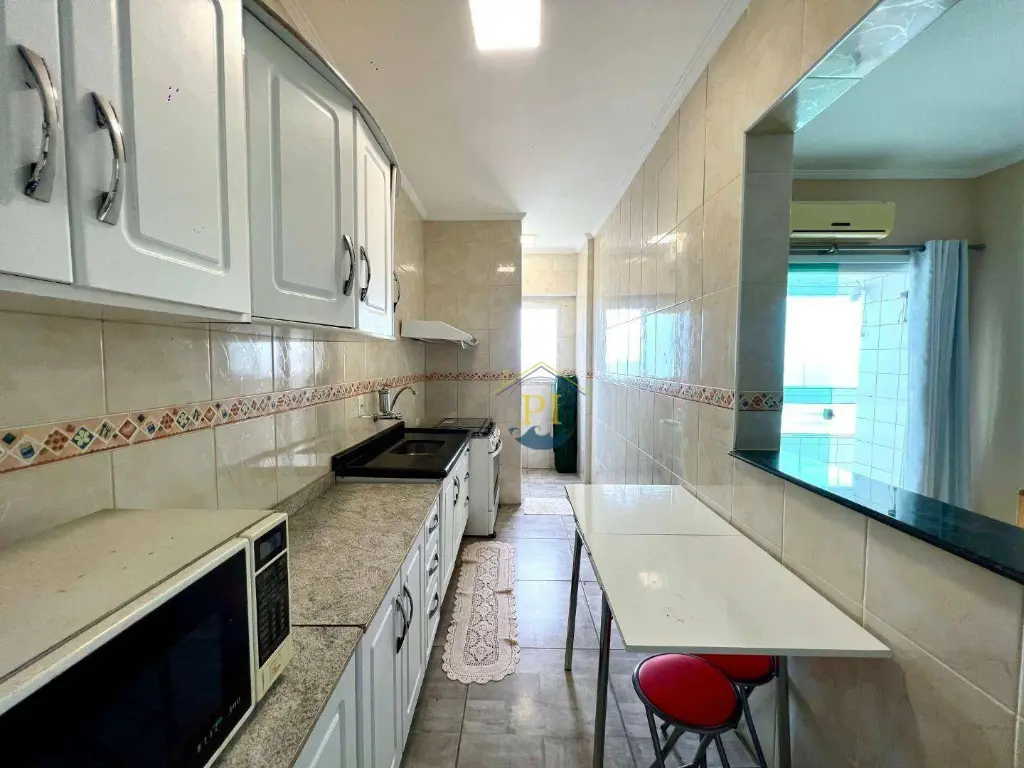FRENTE TOTAL AO MAR, Cozinha planejada, WC social e Área de Serviço; Ar condicionado na Sala e quartos; Piscina, salão de jogos e salão de festas; 01 vaga de garagem;