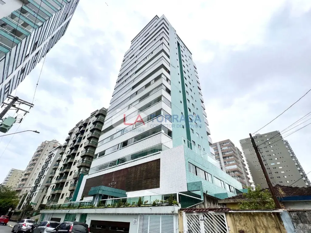 Referência 15809 - Apartamento há 400 metros da Praia, com 2 dormitórios, sendo 1 suíte, sala com sacada gourmet, cozinha, área de serviço. Prédio com mini mercado, garagem coletiva, piscina, sauna. Excelente localização no bairro do Canto do Forte em Praia Grande!