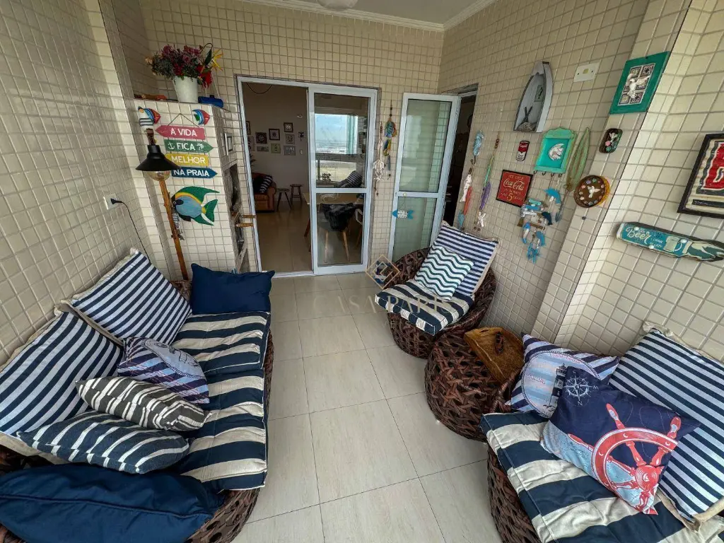 Apartamento com 2 dormitórios sendo 1 suíte, varanda gourmet com vista para o mar, sala 2 ambientes, cozinha, área de serviço, banheiro social e 2 vagas de garagem. Imóvel será vendido semi-mobiliado.