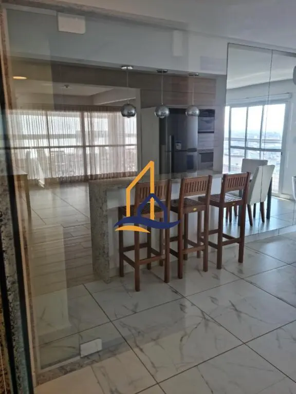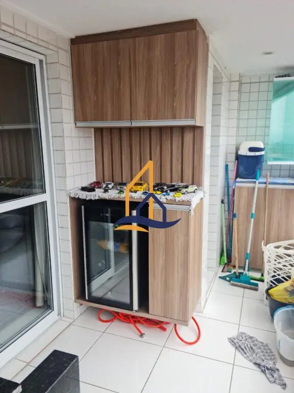 Sacada em L com vidro, armários embutidos