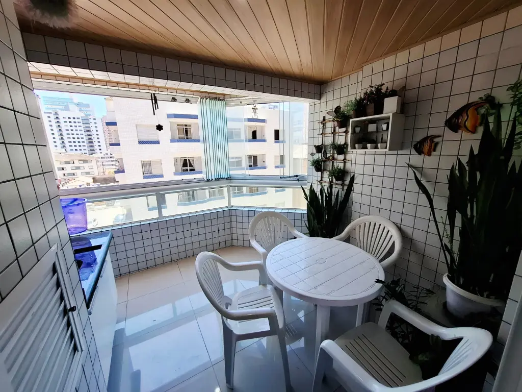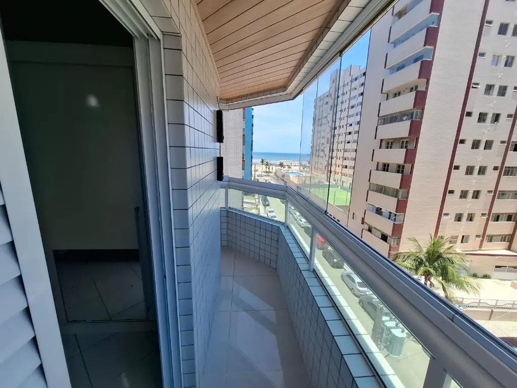 Excelente apartamento mobiliado, localizado a apenas 150 metros da praia da Guilhermina, com vista mar e varanda ampla.