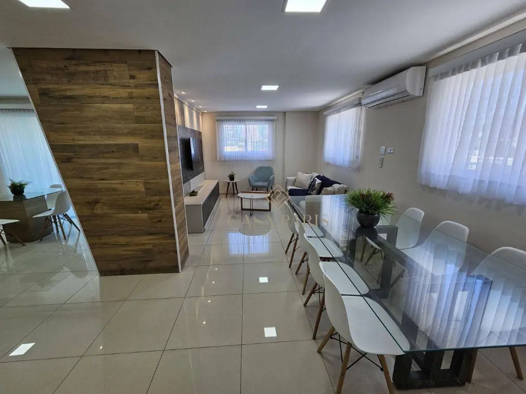 Apartamento de 74m² com 02 dormitórios, 01 suíte, sala dois ambientes, varanda gourmet, cozinha, área de serviço, 01 banheiro social e 01 vaga de garagem.