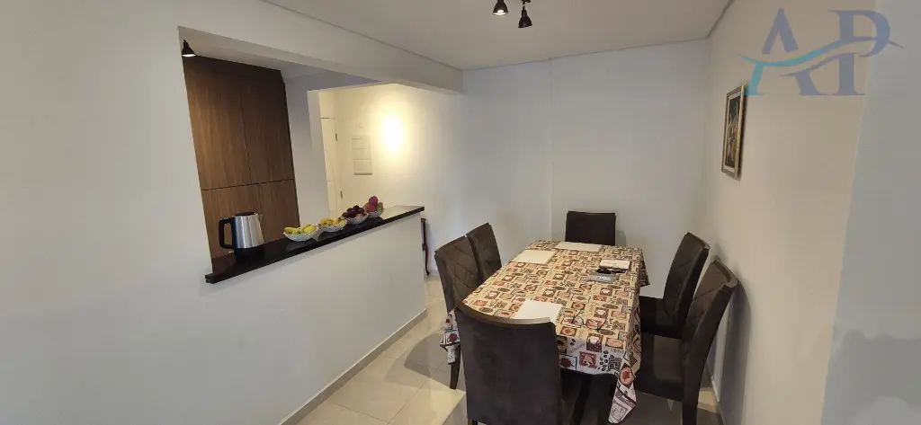 Imóvel Semimobiliado, com dois dormitórios, sendo um deles suíte com sacada privativa, sala para dois ambientes, varanda Gourmet com churrasqueira tradicional à carvão, cozinha com armários, área de serviço, área técnica para ar-condicionado e uma vaga de garagem.