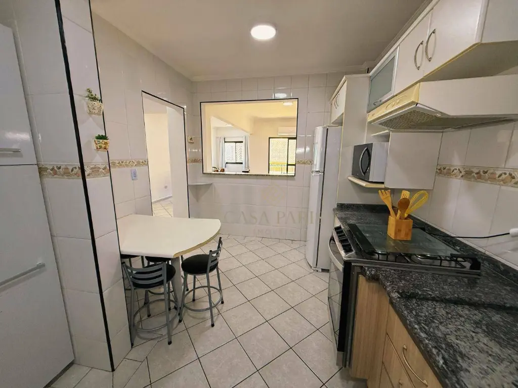 Excelente apartamento com sacada VISTA MAR, sala 02 ambientes, cozinha clara e arejada, área de serviço privativa, 03 dormitórios sendo 01 suíte totalmente amplos e 01 vaga de garagem.