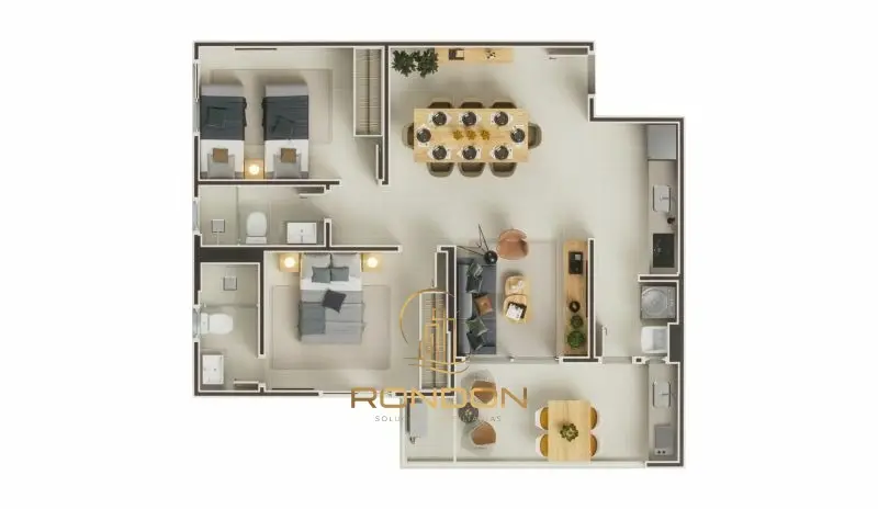 - 2 Dormitórios, sendo 1 Suíte, projetados para oferecer descanso e tranquilidade.