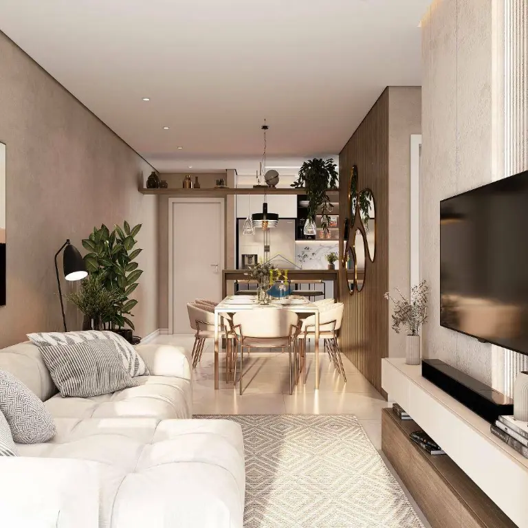 Apartamento espaçoso com 2 dormitórios, sendo 1 suíte, terraço gourmet com churrasqueira elétrica na sacada, sala ampla, cozinha funcional, área de serviço e 1 vaga de garagem.