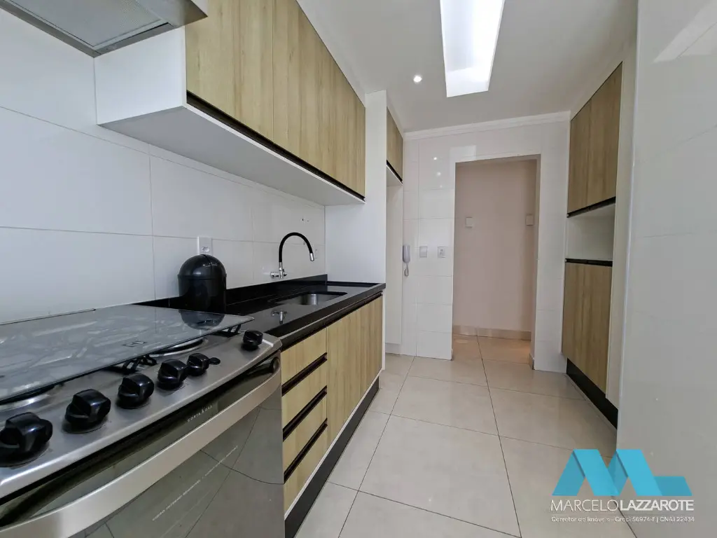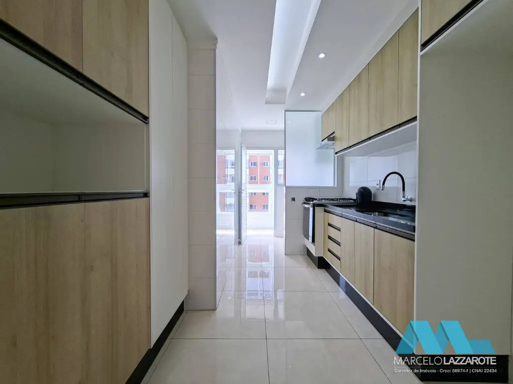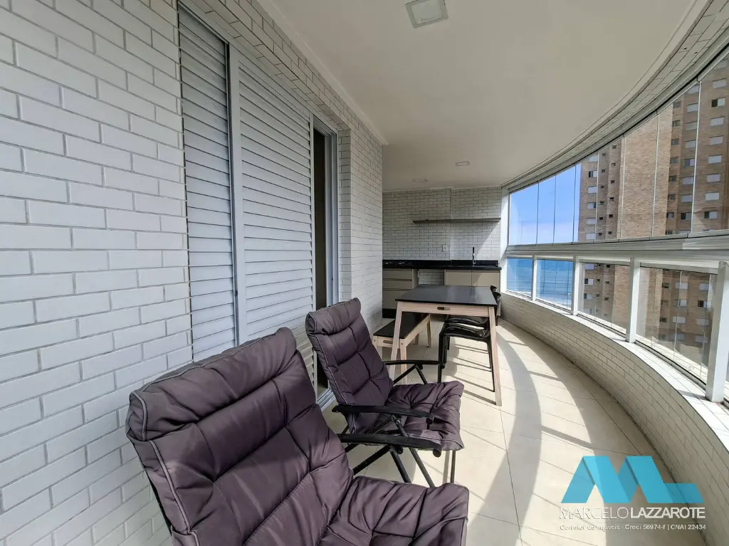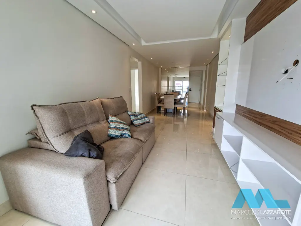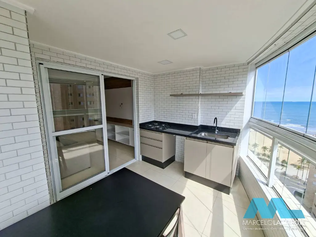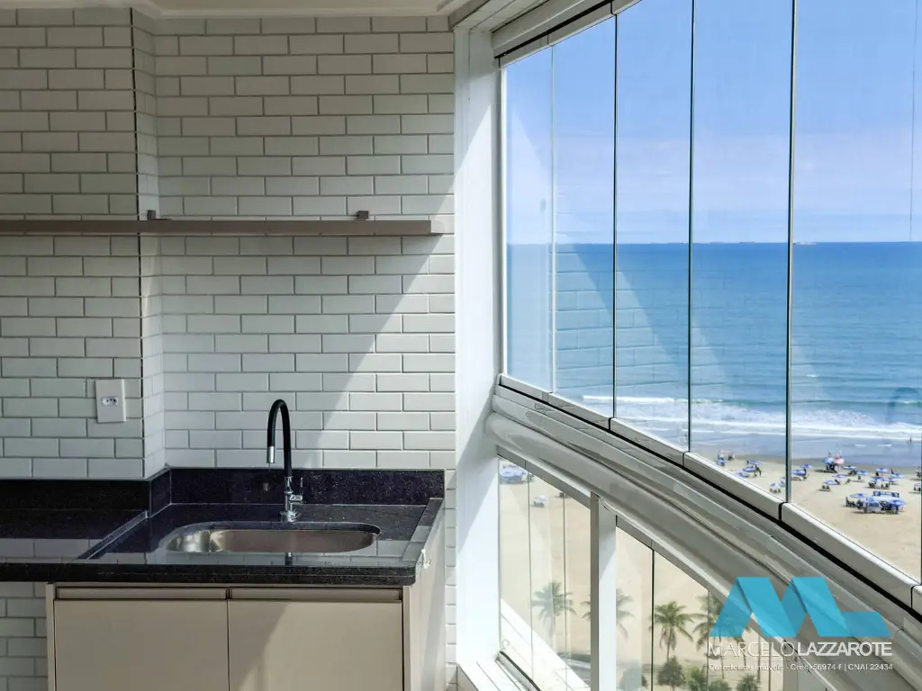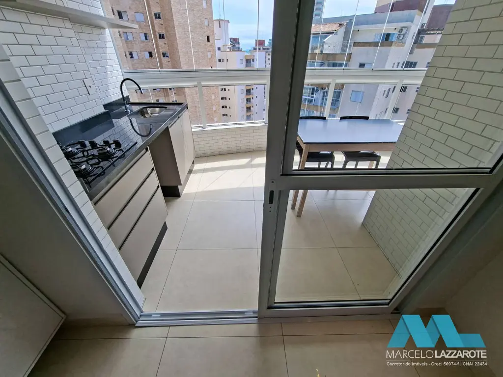 Apartamento de 93 m² de área útil com 2 dormitórios com armários planejados sendo 1 suíte, sala ampla para 2 ambientes, sacada gourmet envolvente toda envidraçada com vista para o mar e churrasqueira, cozinha com armários planejados, são 2 banheiros com box de vidro e gabinete, área de serviço com armário e acesso para a sacada, terraço técnico já preparado para instalação de aparelhos de ar condicionado na sala e dormitórios e 2 vagas de garagem privativa para seu veículo.