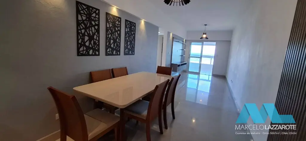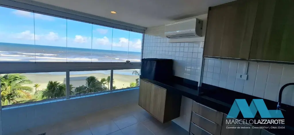 Lindo apartamento mobiliado e planejado com 93 m² de área útil com VISTA COMPLETA FRENTE MAR, com 3 quartos sendo 1 suíte. Sala ampla para 2 ambientes, cozinha com armários planejados, Sacada gourmet envidraçada com vista mar privilegiada, 2 banheiros, área de serviço e 2 vagas de garagem garantindo segurança para seu veículo. (Ar condicionado em todos os ambientes)