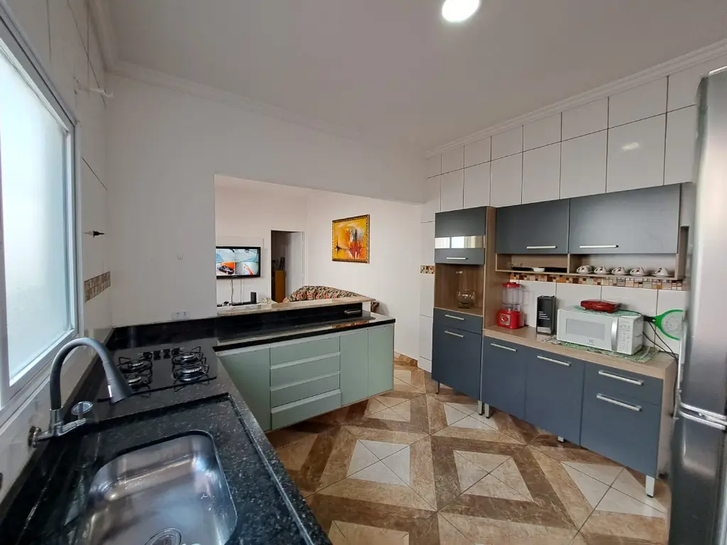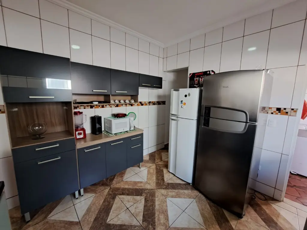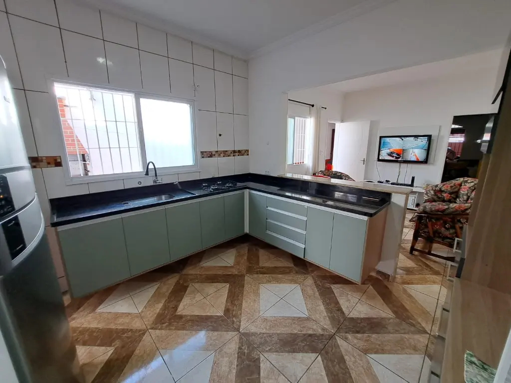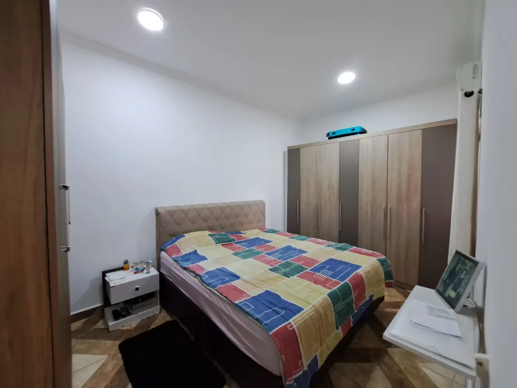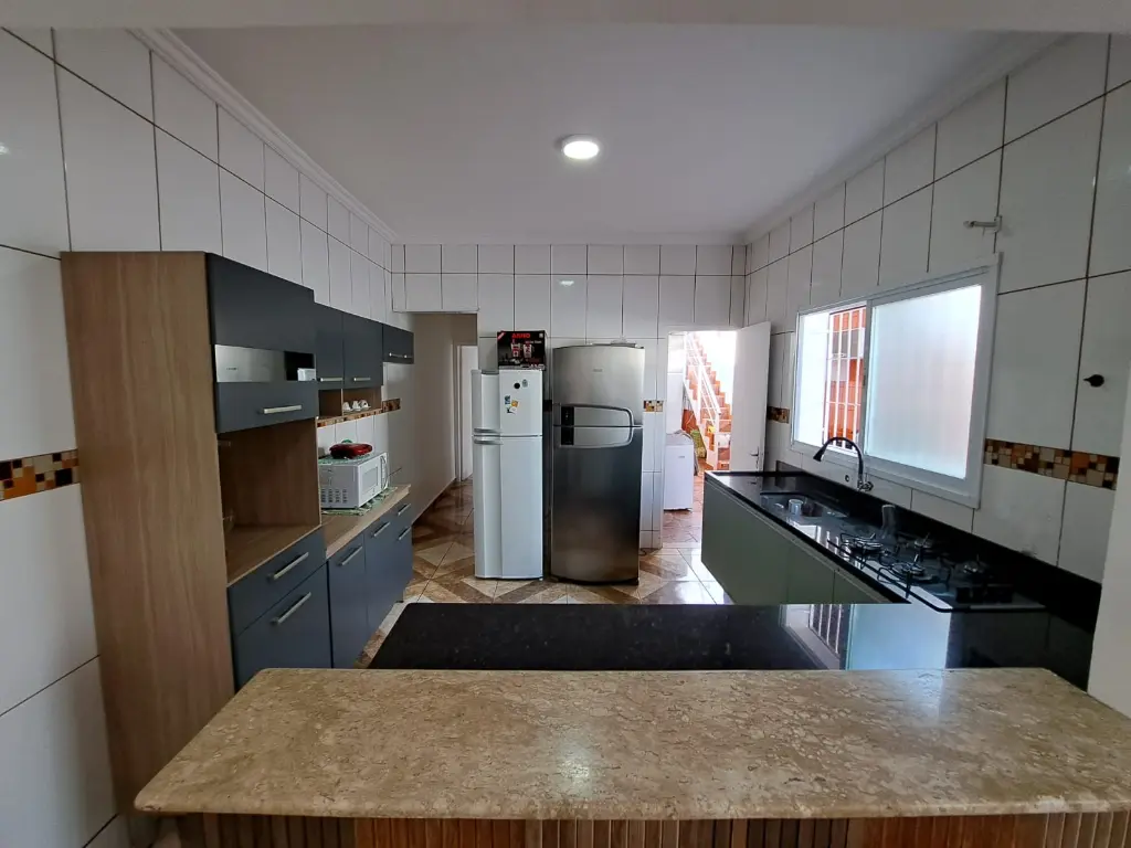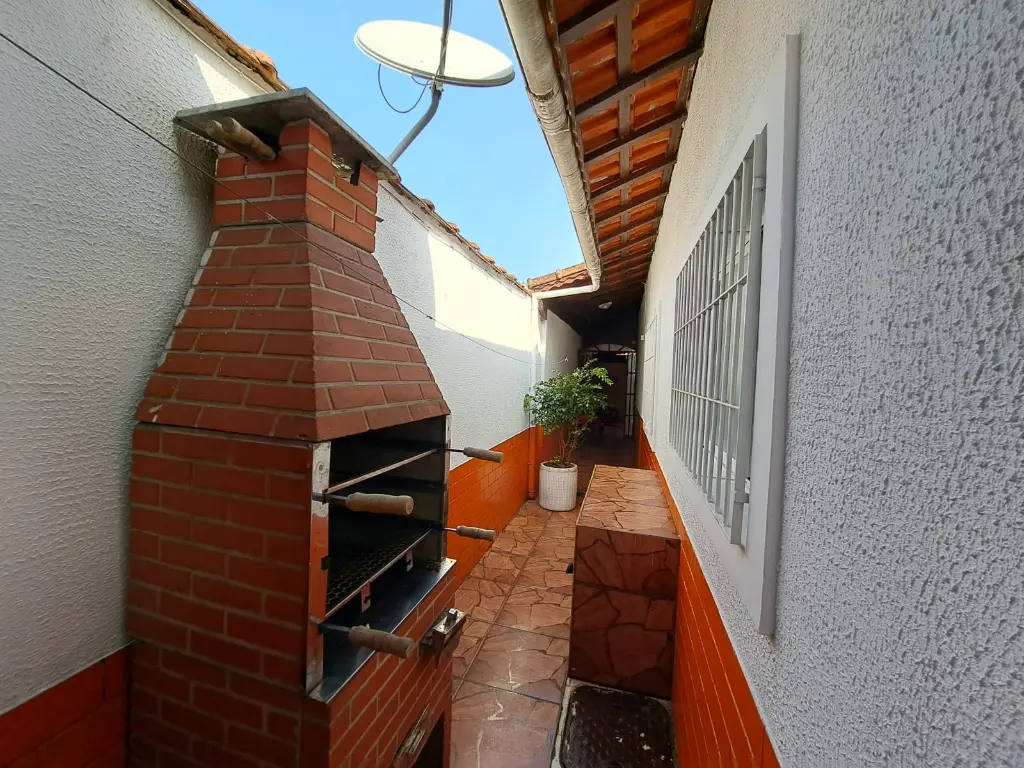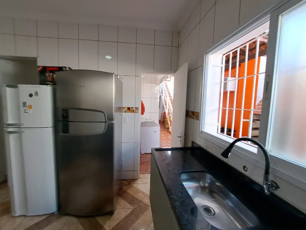 Excelente casa térrea com 3 dormitórios, sendo 1 Suíte, banheiro social - Sala - Cozinha americana, com armários planejados área de serviço, quintal lateral, - parte superior do quintal 1 dormitório suíte -, Garagem coberta para dois carros, Portão em Alumínio Automatizado, piso todo em Porcelanato vitrificado, toda reformada, janelas em alumínio
